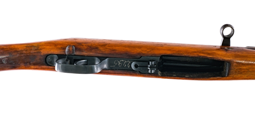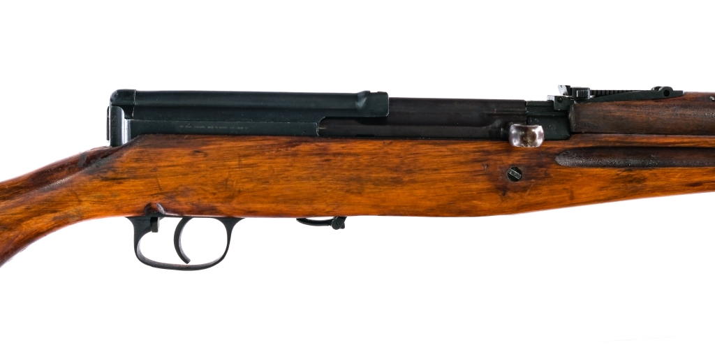 Description Russian Tula SVT 40 chambered in 7.62x54r with a 24.5″ barrel with a two port muzzle break, bayonet lug, and cleaning rod. Manufactured in 1943 with manufacture year and Tula star on the top of the receiver ring. There is an import serial on the rear of the receiver, and CDI import on the side of the receiver. The receiver ring also has a Russian refurbish mark. Reblued barrel, seven hole barrel shroud, receiver, plum bolt, trigger group, and metal butt plate. Refinished/Lacquered wood stock and top handguard. Paddle magazine release and trigger guard safety switch without hole. Rear adjustable leaf sight with groove and adjustable front sight post. Front and rear sling swivels. Matching receiver, bolt handle (scribed number) , Bolt (scribed number), stock, and trigger guard (scribed number) NO MAGAZINE INCLUDED. Must ship to FFL or C&R holder. Condition: Good/Very good with the finish and wood appearing to have been refinished/re-arsenal. The metal parts retain most of their bluing with light handling wear and patina, the bolt and bolt handle has a plum color that is common from being refinished. Metal oxidation on the butt plate. Some pitting and marks underneath the finish. The stock is in solid shape with varying scratches, scuffs, and dings. Bright bore with strong rifling, shows some spots of metal oxidation. Barrel Length: 24.5″ Serial: T08494 Manufacturer: TULA ARMS PLANT Year: 1943 Caliber: 7.62 x 54R Model: SVT 40 Book# 08415