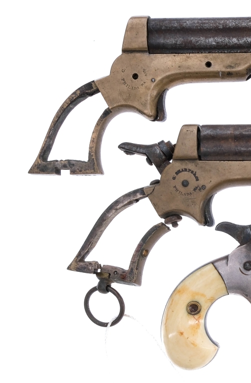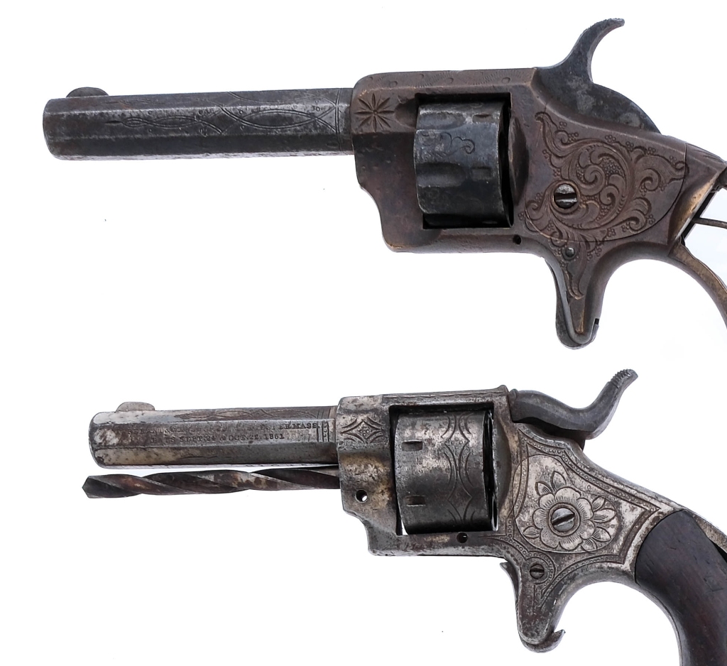 Description This lot is for five assorted Antique revolvers. Makers include: Whitneyville Armory, Zaoue, C. Sharps and Forehand & Wadsworth. Calibers include: .41Rimfire and .22 Rimfire. Antique, No FFL required and ships to MOST buyers home. Condition: Poor with scratches, finish wear/loss, rust, broken/missing parts, drill bit holding one cylinder in place and handling wear. All the bores have rust. SOLD AS-IS. Barrel Length: 2.5″ 3″ 2.5″ 2.5″ 2.5″ Serial: 34462 17551D NVSN NVSN NV Manufacturer: Forehand & Wadsworth Whit Caliber: .22 RF .41 RF Model: Derringer Pepperbox