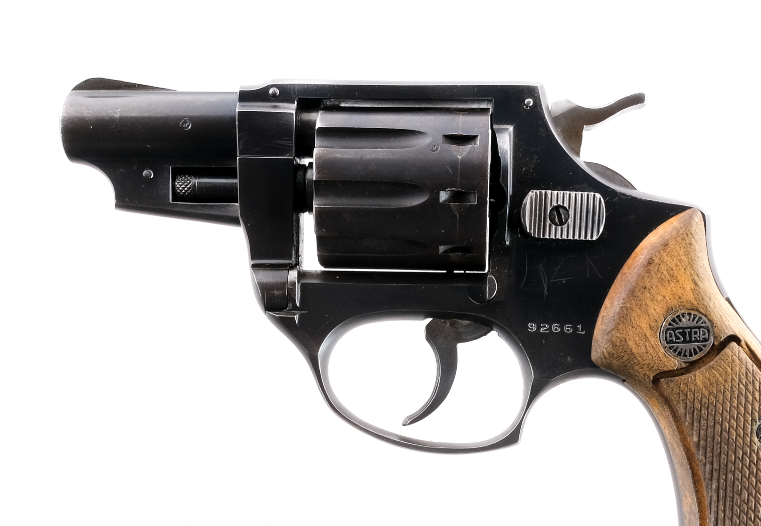 Description Astra Cadix in .22 Short, Long or Long Rifle with a nine round capacity and a 2″ barrel. Made in Spain. Checkered wood grip plates. Blued frame, cylinder and trigger. Serrated trigger and checkered hammer. Left side of frame serrated cylinder release. Front and rear fixed sights. Must ship to a C&R or FFL holder. Condition: Good/Very Good with light scratches and handling wear. One of the previous owners has scratched his initials into the sides. Clean rifled bore. Barrel Length: 2″ Serial: 92661 Manufacturer: Astra Year: 1968 Caliber: .22 S L LR Model: Cadix Book# 9-011