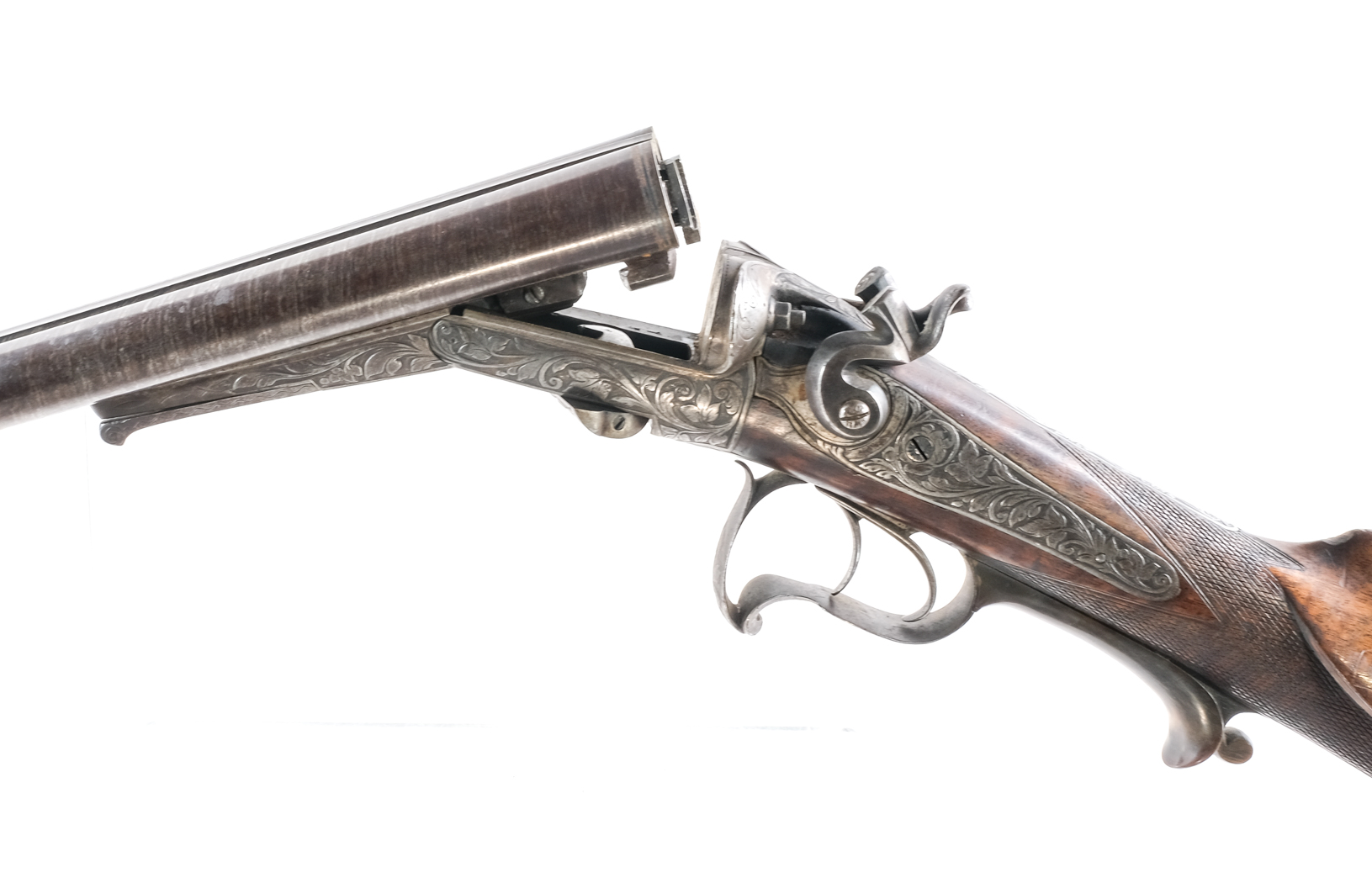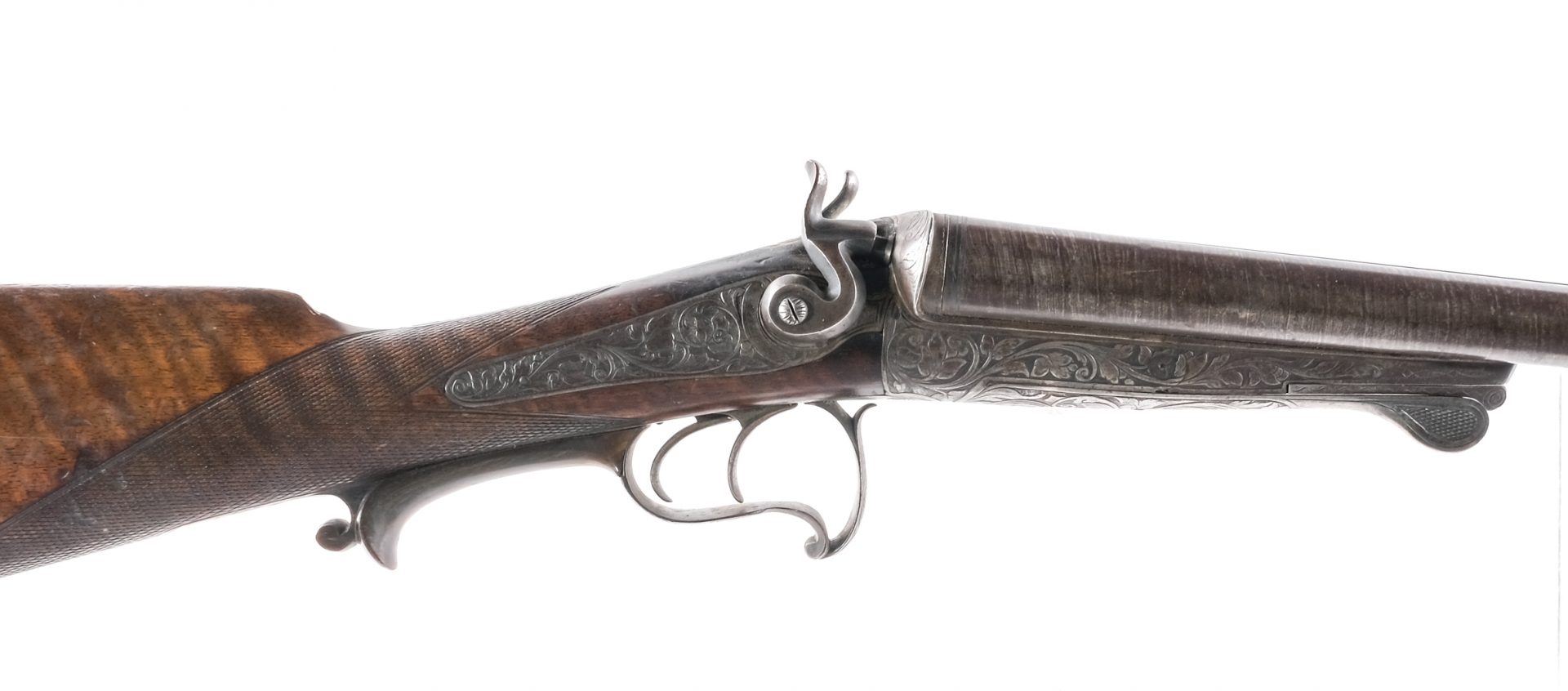 Description Belgian made side by side shotgun in 16 gauge with a two round capacity and a 31″ Damascus barrel. Metal butt plate. Checkered Monte Carlo style wood stock. Horn hand rest on the wrist. Engraved trigger guard and receiver. Double untextured triggers and hammers. Engraved metal foregrip with checkered break action lever. Front fixed brass bead sight. Metal loops for mounting a shoulder sling. Must ship to a C&R or FFL holder. Condition: Good with scratches and touches of rust. The smooth bores have a few very small spots of rust/pitting otherwise very clean. Barrel Length: 31″ Serial: 1972 Manufacturer: Unknown Gauge: 16 Model: SxS Shotgun Book# 9-720