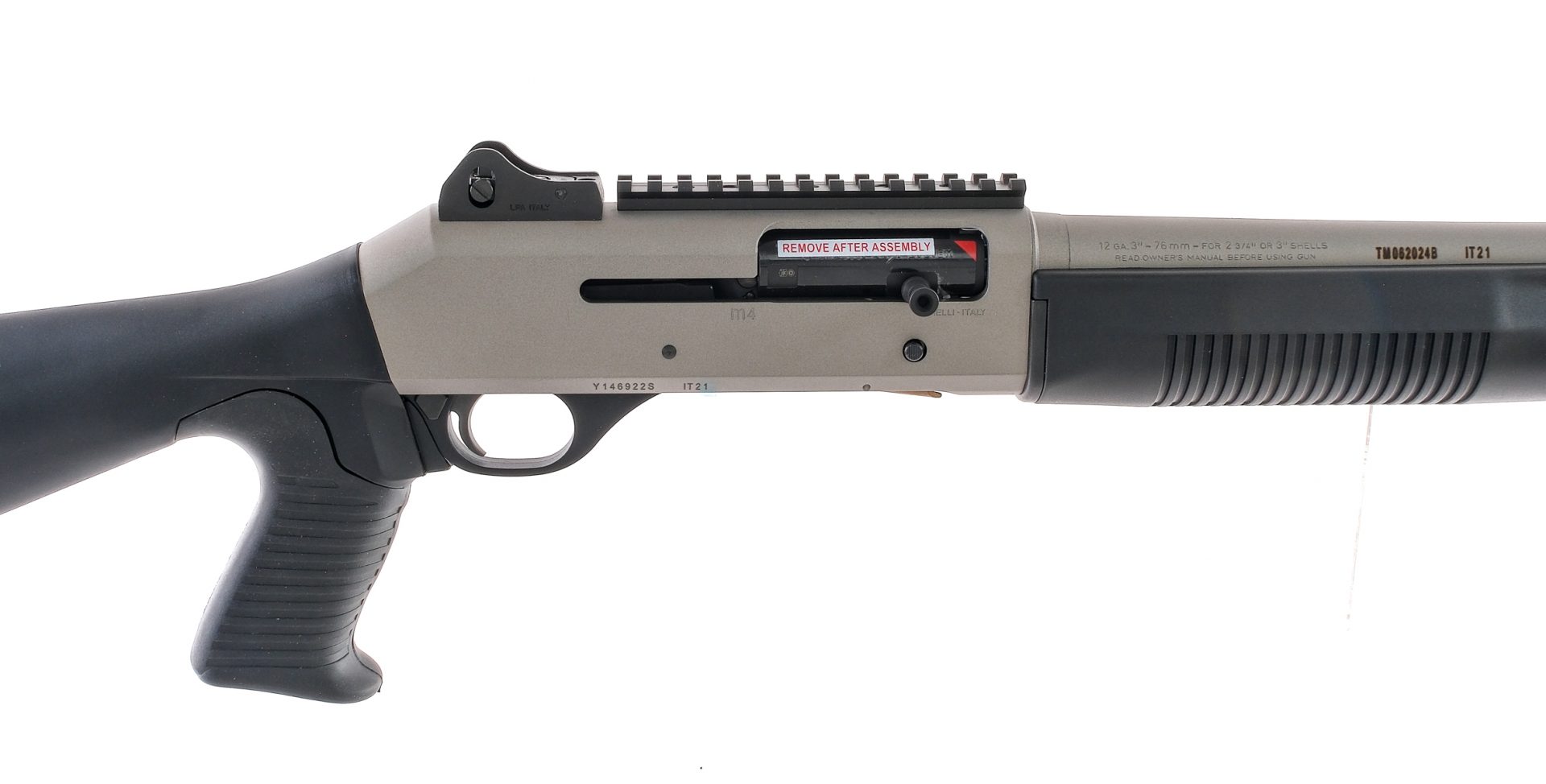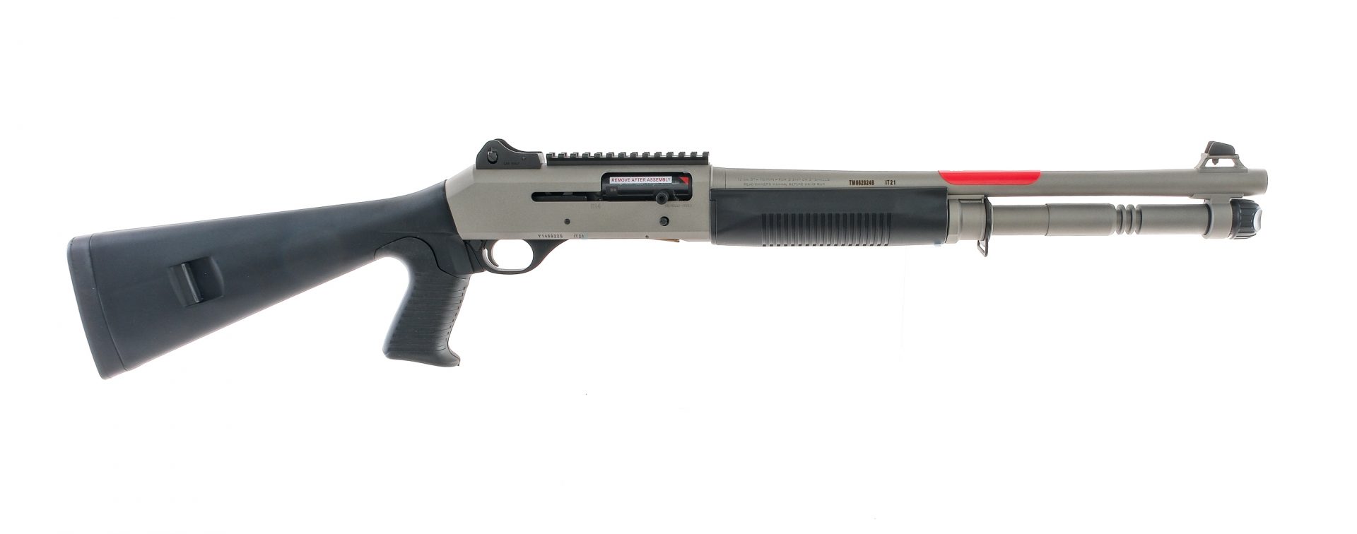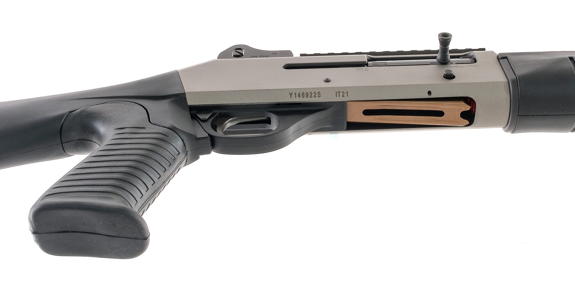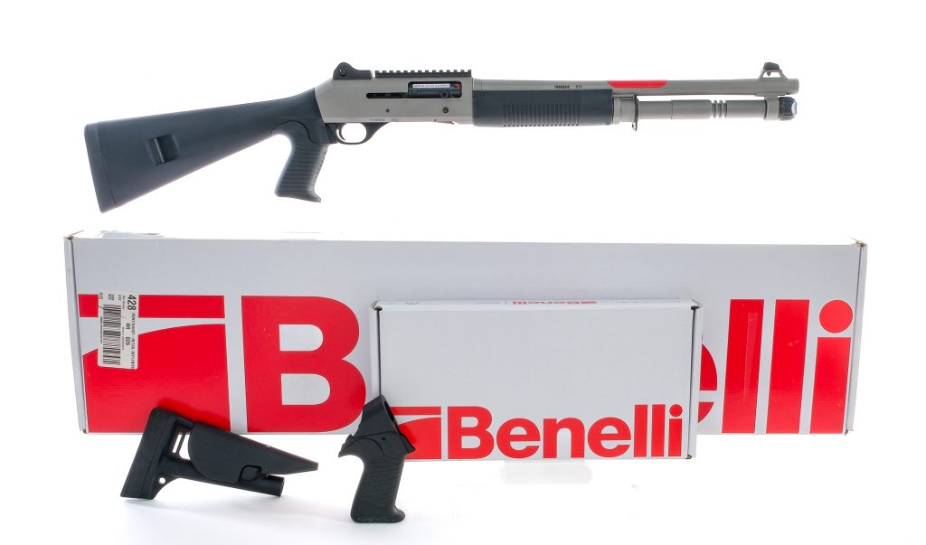 Description Benelli M4 chambered in 12 Gauge for 2 3/4″ and 3″ shells with a five round tube magazine and a 18.5″ barrel with a MOD removable choke. Piston Driven Auto-Regulating Gas Operating shot gun with titanium Cerakote finish. Textured bolt release button and cross bolt safety selector. Ribbed polymer forend and pistol grip with polymer fixed stock with rubber butt pad. Ghost ring iron sights and receiver mounted optics rail. Comes in its factory box with the complete package including its factory paperwork, extra retracting stock and pistol grip, two forend pieces, extra magazine tube and loading gate, Impact Weapons Components Multi Light mount, Mesa Tactical eight round shotshell carrier, retaining pilers, multiple choke tools/wrenches, Ben Oil, and extra trigger, hammer, and disconnector. Must ship to FFL holder. Check local laws before mounting retractable stock. Condition: New in box. Barrel Length: 18.5″ Serial: Y146922S Manufacturer: BENELLI Gauge: 12 Ga. Model: M4 Titanium Cerakote Book# 02044