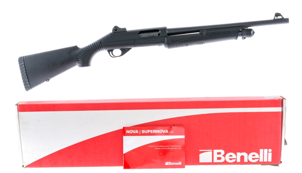 Description Benelli Nova Tactical chambered in 12 gauge for 3 1/2″ or shorter shells with a tubular magazine and a 18.5″ barrel. Matte black finished barrel, magazine tube, and trigger. Polymer receiver with cross bolt safety and serrated action release button. Adjustable rear sight and protected front post. Textured polymer forend and pistol grip stock with hard rubber recoil pad. Comes in its factory box with manual. Must ship to a FFL holder. Condition: Like new in box, light handling wear. Bright and clean smooth bore. Barrel Length: 18.5 Serial: Z723966E14 Manufacturer: BENELLI Gauge: 12 Ga. Model: Nova Tactical Book# 07200