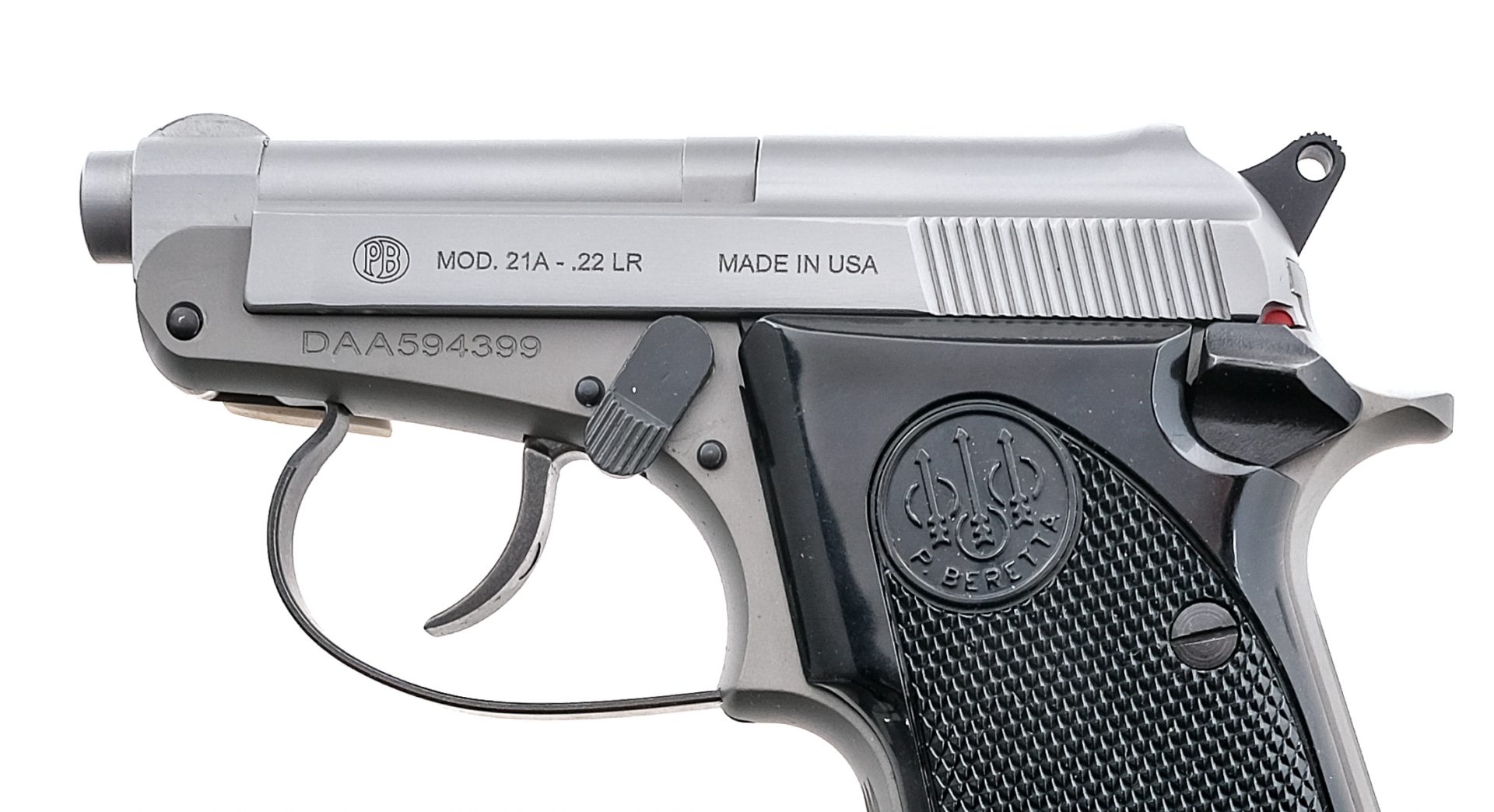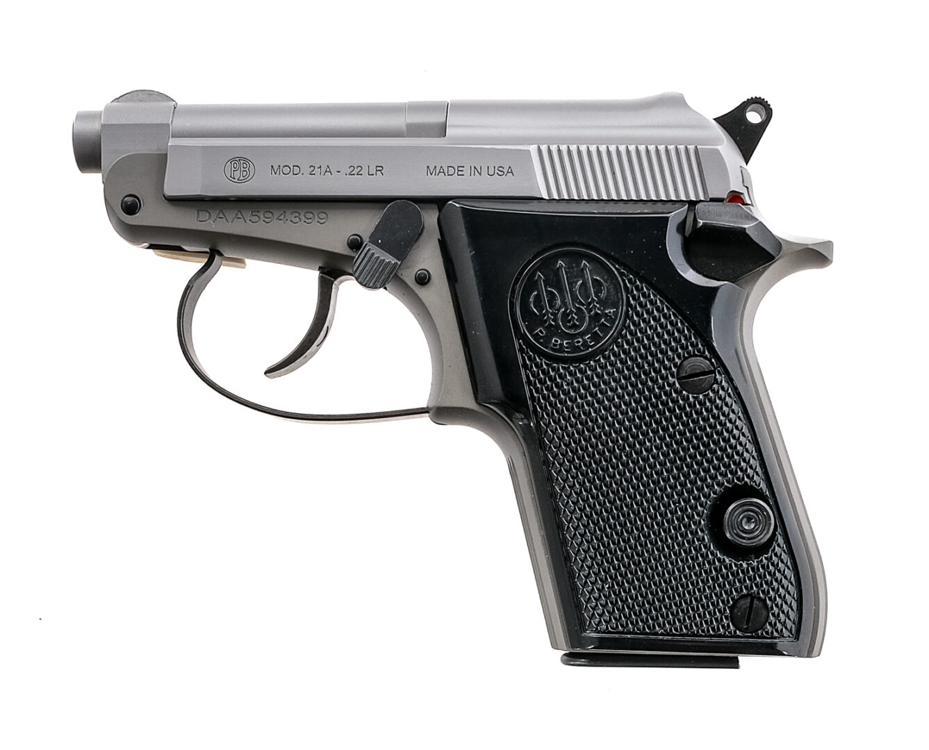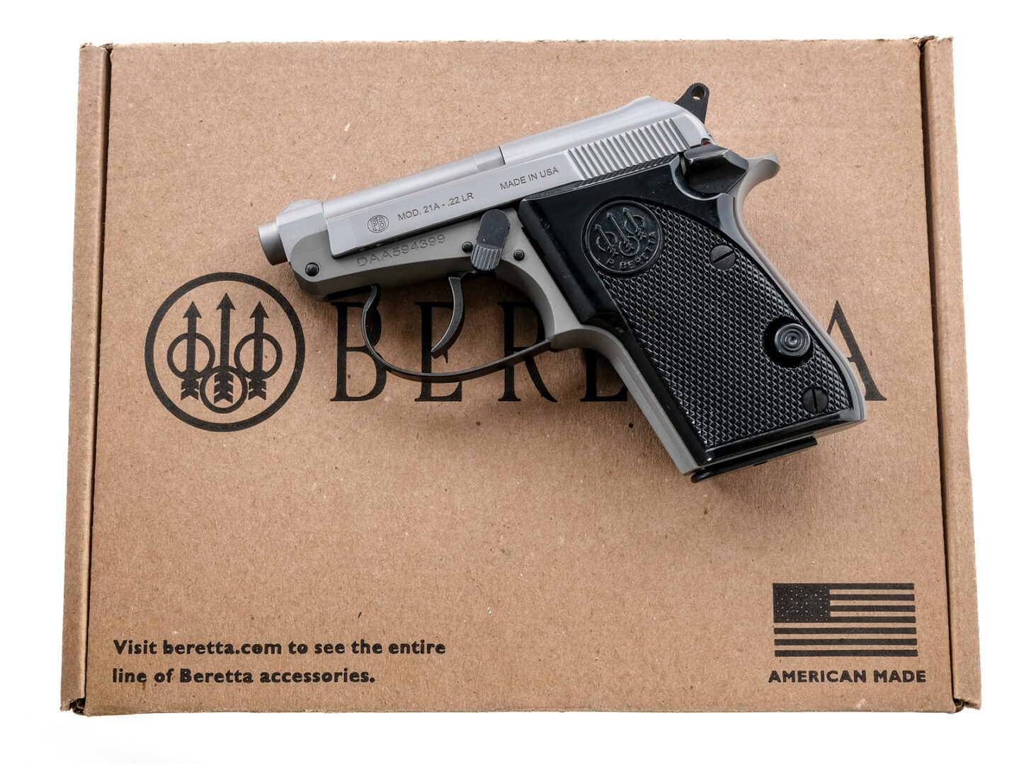 Description Beretta 21A Bobcat Inox chambered in .22 long rifle with one, seven round magazine and a 2.5″ tip-up barrel. Stainless steel frame with textured front strap, checkered composite grips, frame mounted safety and barrel tip-up lever. Blued double/single action trigger and ribbed hammer. Stainless serrated slide and barrel. Fixed iron sights. Comes in its factory box with factory paperwork, lock, Beretta soft case, and one magazine. Must ship to FFL holder. Condition: New in box. Barrel Length: 2.5″ Serial: DAA594399 Manufacturer: BERETTA Caliber: .22 Long Rifle Model: 21A Bobcat Inox
