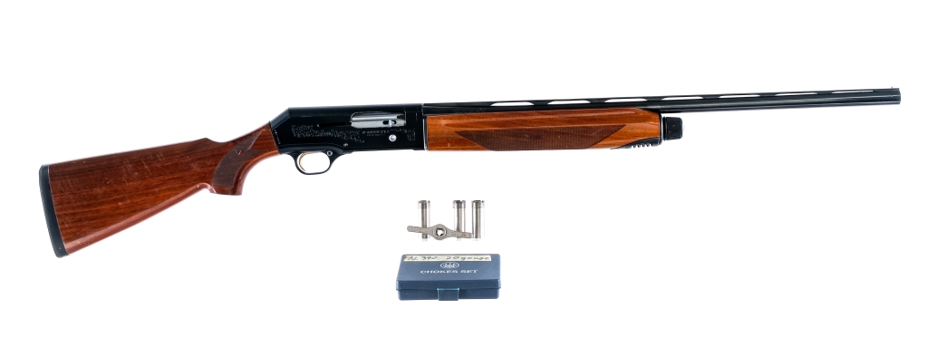 Description Beretta AL390 Silver Mallard chambered in 20 gauge for 2 3/4″ and 3″ shells with a tube magazine and a 26″ vented rib barrel. Removable chokes with currently installed Improved Cylinder choke. Also included is a Skeet, MOD, and FULL chokes. Blued barrel and magazine tube. Black finished engraved alloy receiver. Stainless bolt, charging handle, and loading gate. Push button bolt release and cross bolt safety. Gold plated trigger. Checkered wood forend and pistol grip stock with rubber butt pad. Front silver bead sight. Comes with choke set and choke tool. Must ship to a FFL holder. Condition: Very Good with some scratches, sharp edge wear, and general cosmetic handling wear. Normal wear on the internal/moving parts from operation. Some scratches and dings on the wood. Bright and clean smooth bore. Barrel Length: 26″ Serial: V57777E Manufacturer: BERETTA Gauge: 20 Ga. Model: AL390 Silver Mallard Book# 07354