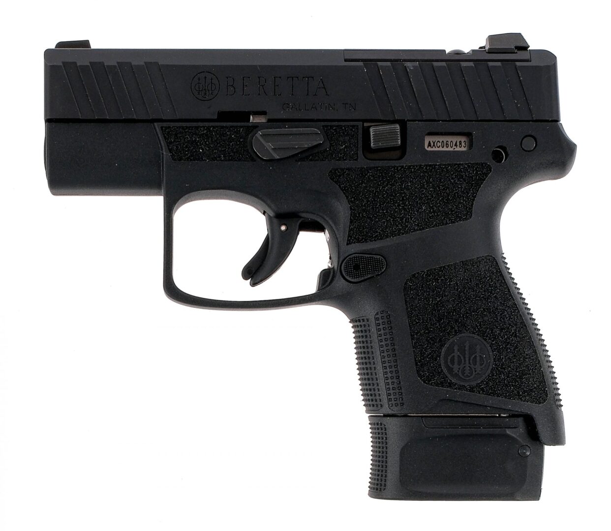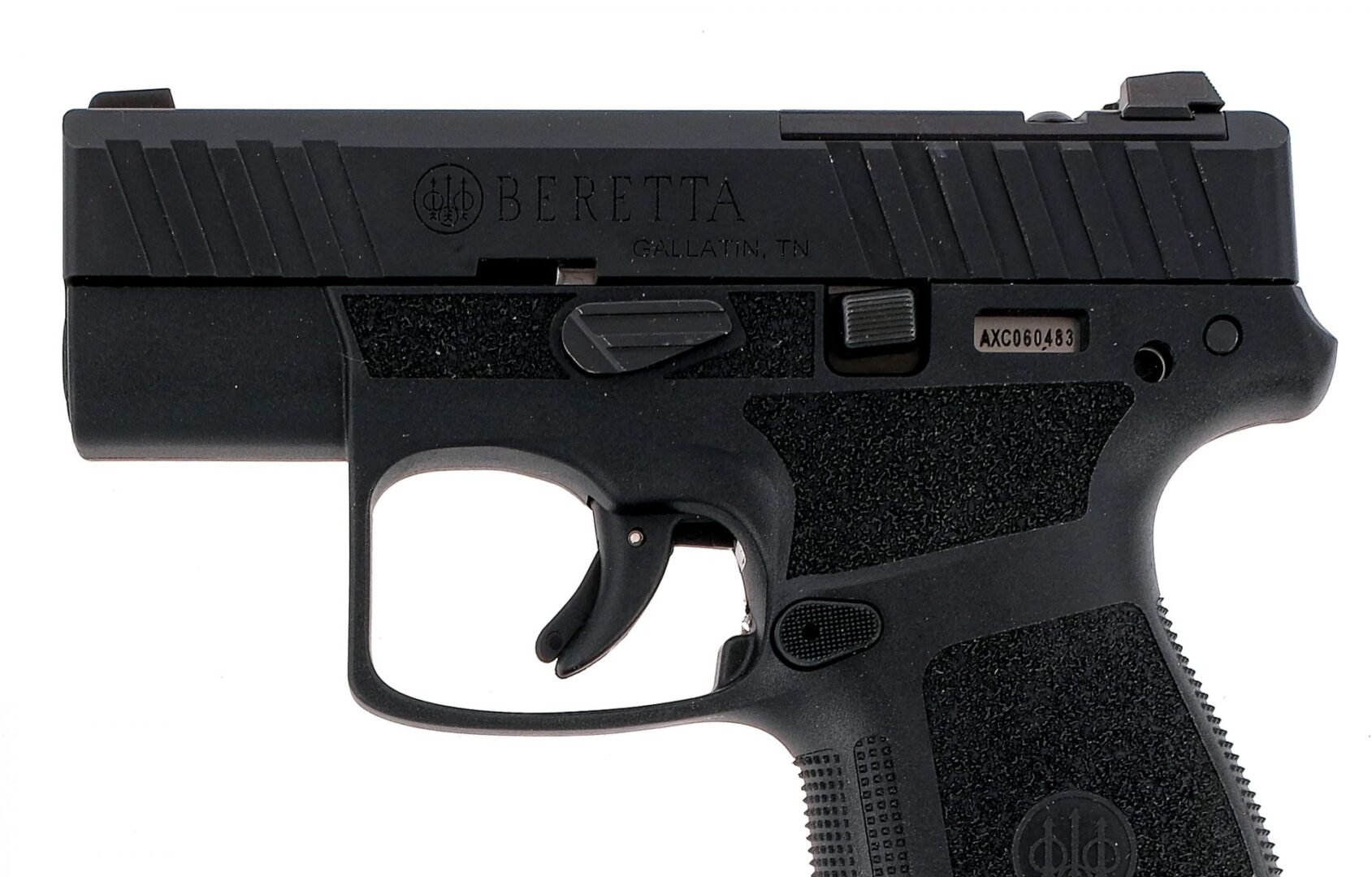 Description Beretta APX A1 Carry chambered in 9mm with one, six round magazine, one eight round magazine, and a 3″ barrel. Textured polymer frame with textured magazine release and slide stop. Polymer trigger with trigger safety. Black finished slide with front and rear slide serrations. Blacked our rear and front white dot iron sights. Comes in its factory box with factory paperwork, chamber lock, and two magazines. Must ship to FFL holder. Condition: Very good/Excellent with light scratches and wear from normal handling wear. Clean rifled bore. Barrel Length: 3″ Serial: AXC060483 Manufacturer: BERETTA Caliber: 9x19mm Parabellum Model: APX A1 Carry Book# 04552