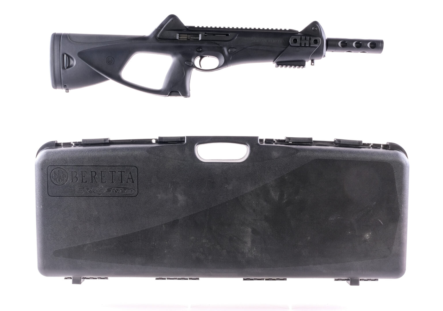 Description Beretta CX4 Storm chambered in 9mm with one, seventeen round magazine and a 17″ barrel with pinned barrel shroud. Full picatinny top rail, and partial side and bottom rails. Adjustable front sight post and two rear apertures. Reversible charging handle, magazine release, and ejection port. Cross bolt safety and left side bolt release lever. Rubber butt pad and cheek weld. Front and rear sling mounting points. Comes in its factory case with factory paperwork, cleaning rods/brushes, and one magazine. Must ship to FFL holder. Condition: Like new with some cosmetic wear from handling and storage. Clean bore with strong rifling. Barrel Length: 17″ Serial: CX16297 Manufacturer: BERETTA Caliber: 9x19mm Parabellum Model: CX4 Storm