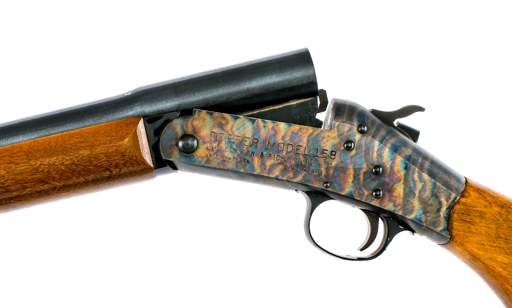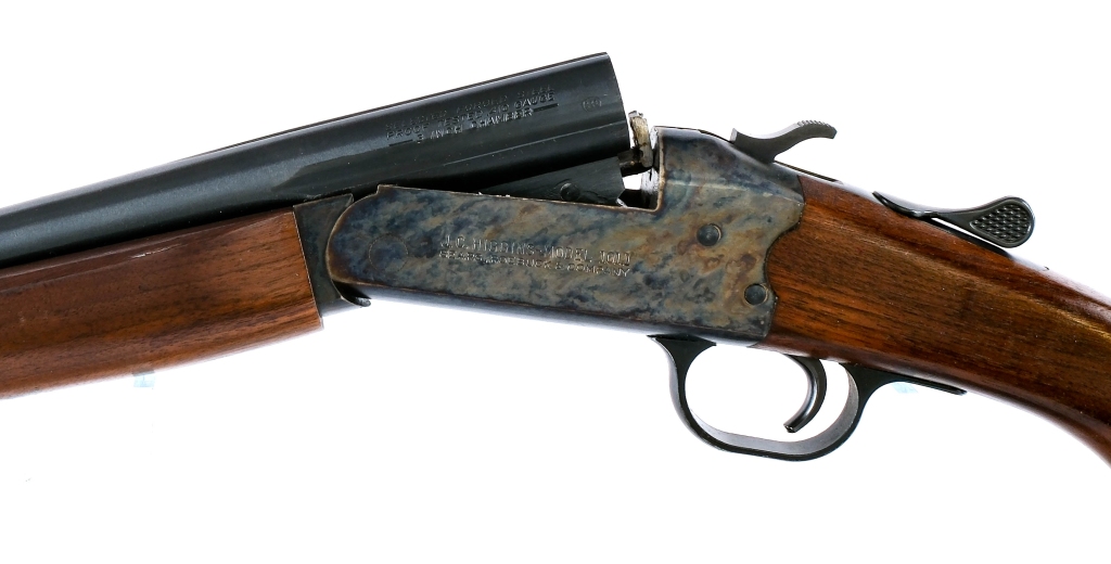 Description Shotgun lot with two break action tip up shotguns. J.C. Higgins Model 101.1 in .410 gauge with a single round capacity and a 26″ barrel. Made between 1950 and 1968. Smooth wood stock and front forend. Case colored receiver. Blued trigger, hammer and barrel. Front fixed metal bead sight. Harrington & Richardson Topper Model 158 in 20 gauge 3″ with a single round capacity and a 28″ MOD fixed choke barrel. Made between 1962 and 1973. Smooth wood stock and front forend. Blued trigger, hammer and barrel. Case colored receiver. Front fixed brass bead sight. Must ship to a C&R or FFL holder. Condition: Good with light scratches, wood dings and handling wear, the Topper 158 having a modified lengthened stock. Both have clean smooth bores. Barrel Length: 28″ 26″ Serial: AL221057 NVSN Manufacturer: J.C. Higgins Harrington & Gauge: 20 410 Caliber: . Model: Topper 158 101.1 Book# 07633 07608