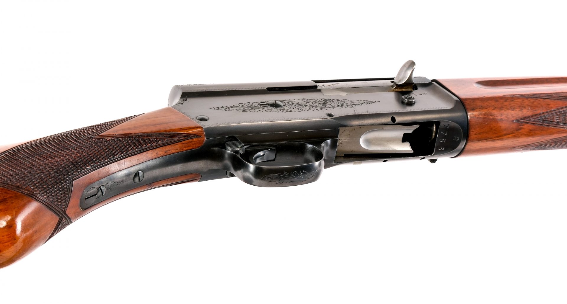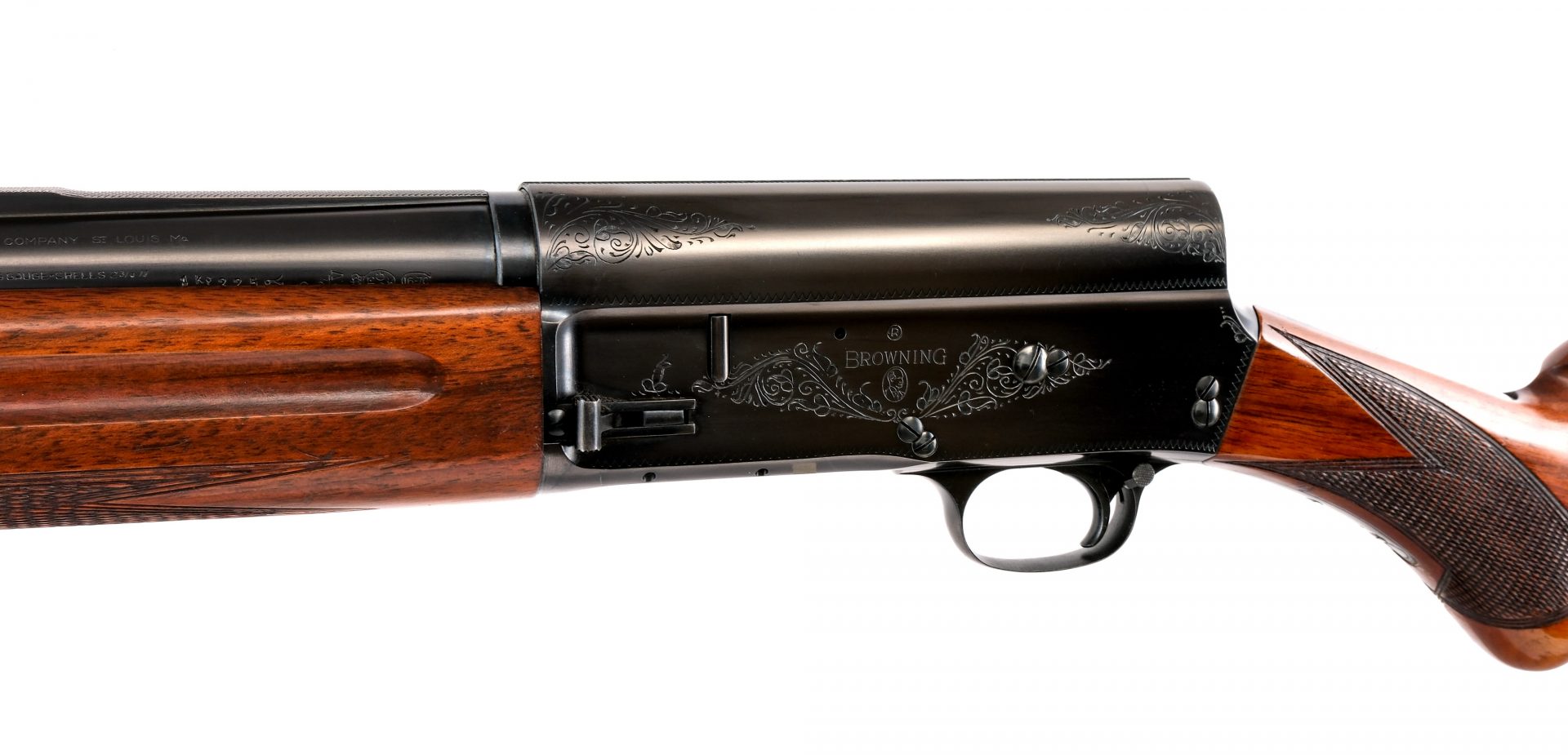 Description Browning Auto-5 in 16 gauge 2 3/4″ with a four round capacity and a 27.5″ FULL fixed choke solid top rib barrel. Made in Belgium. Sweet Sixteen Model designation engraving not on this one made in 1957. FN/Browning black pressed horn butt plate. Checkered round pistol grip stock and front forend. Blued trigger guard, trigger, receiver and barrel. Rear trigger guard push button safety. Left side of receiver checkered magazine cut-off lever. Right side of receiver checkered charging handle and action release. Front fixed metal bead sight. Must ship to a C&R or FFL holder. Condition: Very Good/Excellent with light scratches and wood dings. Barrel Length: 27.5″ Serial: R7756 Manufacturer: Browning Gauge: 16 Year: 1957 Model: A5 Book# 04930