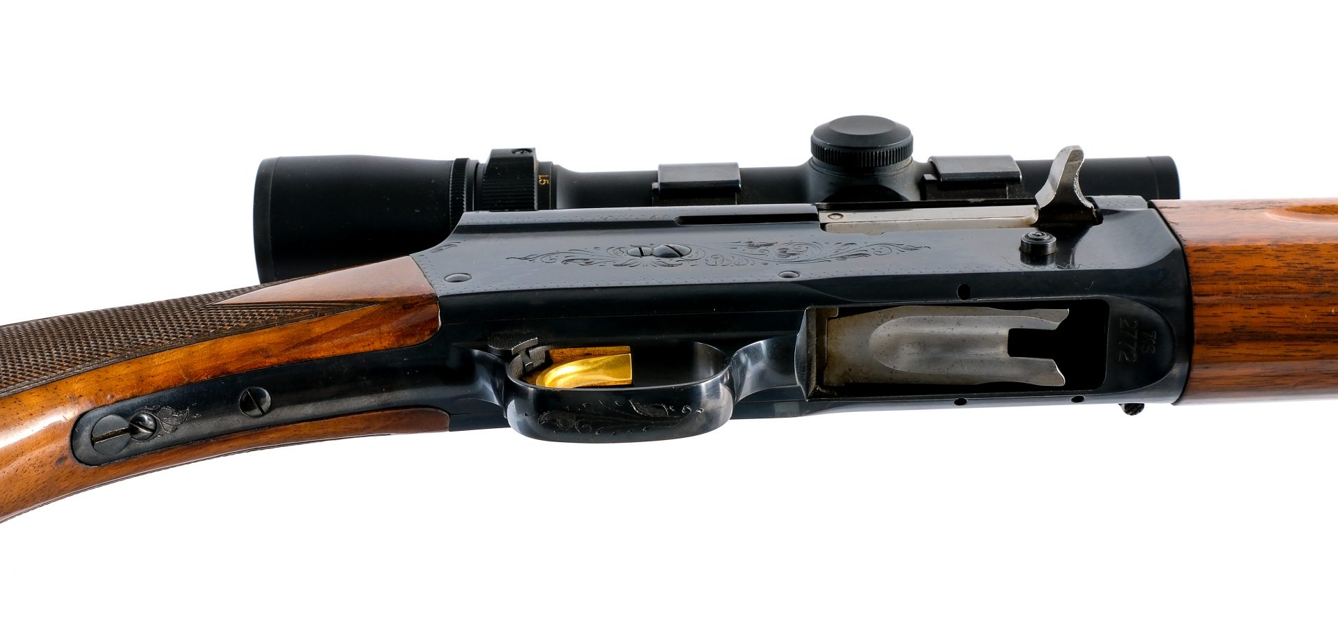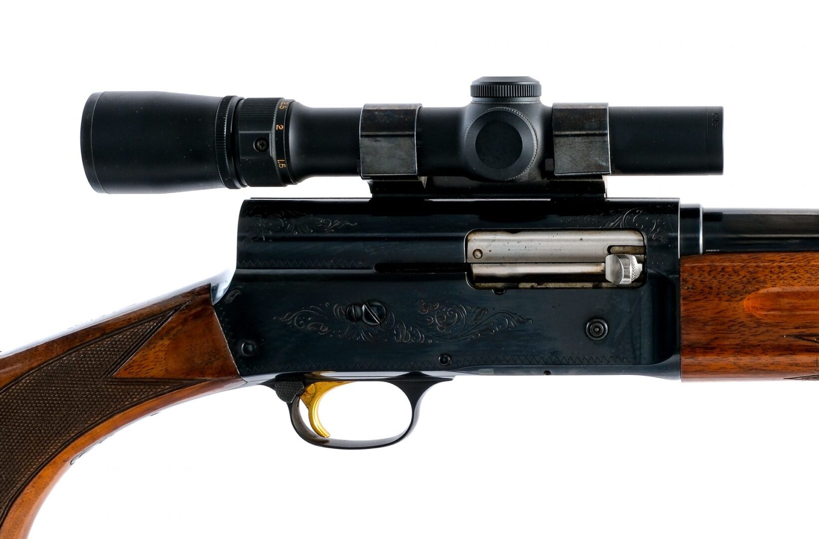 Description Browning A5 Sweet Sixteen chambered in 16 gauge for 2 3/4″ shells with a tubular magazine and a 24″ special steel barrel. Manufactured in Japan in 1971, with serial number 71S2772. The bore has a fixed CYL choke. Blued barrel, engraved receiver, and trigger guard. Gold plated trigger. Cross bolt safety and push button bolt release. Adjustable rear sight and fixed front blade. The receiver is drilled and tapped with a Weaver CV3 scope on a dovetailed Weaver rail. Checkered wood forend and pistol grip stock with FN butt plate. Front and rear sling eyelets. Must ship to a FFL or C&R holder. Condition: Good/Very Good with scratches, contact marks, and handling wear. Some light speckling of metal oxidation. Scratches, scuffs, and dings on the wood. The bore is bright and rust free, could use a little cleaning. Barrel Length: 24″ Serial: 71S2772 Manufacturer: BROWNING Gauge: 16 Ga. Year: 1971 Model: A5 Sweet Sixteen Book# 05004
