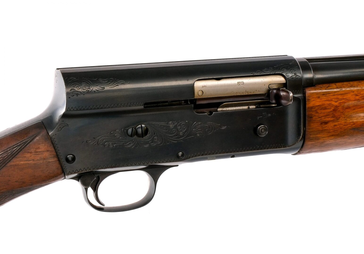 Description Browning Auto-5 Sweet Sixteen in 16 gauge 2 3/4″ with a four round capacity and a 27.5″ MOD fixed choke top rib vented barrel. Made in Belgium. Pachmayr rubber butt pad. Checkered pistol grip wood stock and front forend. Blued trigger guard, trigger, receiver, checkered charging handle and barrel. Rear trigger guard push button safety. Left side magazine cut-off lever. Right side charging handle and action release button. Front fixed brass bead sight. Must ship to a C&R or FFL holder. Condition: Good with scratches, dings, small hairline wood crack on the left side of forend where the wood meets receiver and handling wear. The butt stock has dark stains and a small professional repair to the top of comb. Clean smooth bore. Barrel Length: 27.5″ Serial: 9S25951 Manufacturer: Browning Gauge: 16 Year: 1959 Model: A5 Sweet Sixteen Book# 05001