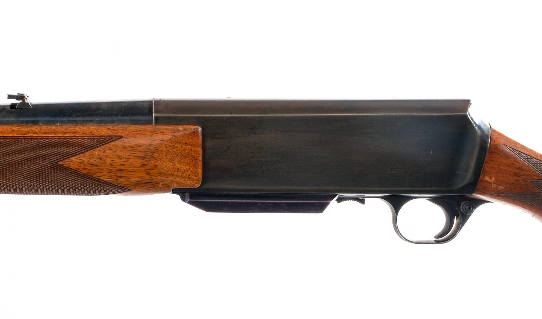 Description Browning BAR in .300 Winchester Magnum missing its removable magazine with a 25″ barrel. Made in Belgium. Basket weave patter rubber butt pad. Checkered wood stock and front forend. Blued trigger guard, trigger, receiver and barrel. Rear trigger guard located push button safety. Front trigger guard located magazine door cover release. Right side serrated charging handle. Rear adjustable and front hooded fixed blade sight. Metal eyelets for mounting a shoulder sling. Must ship to a C&R or FFL holder. Condition: Fair with scratches, dings, refinished receiver, spots of rust and missing magazine. The rifled bore has a spots of rust. Barrel Length: 25″ Serial: 37337 Manufacturer: Browning Year: 1968 Caliber: .300 Win Mag Model: BAR Book# 03232