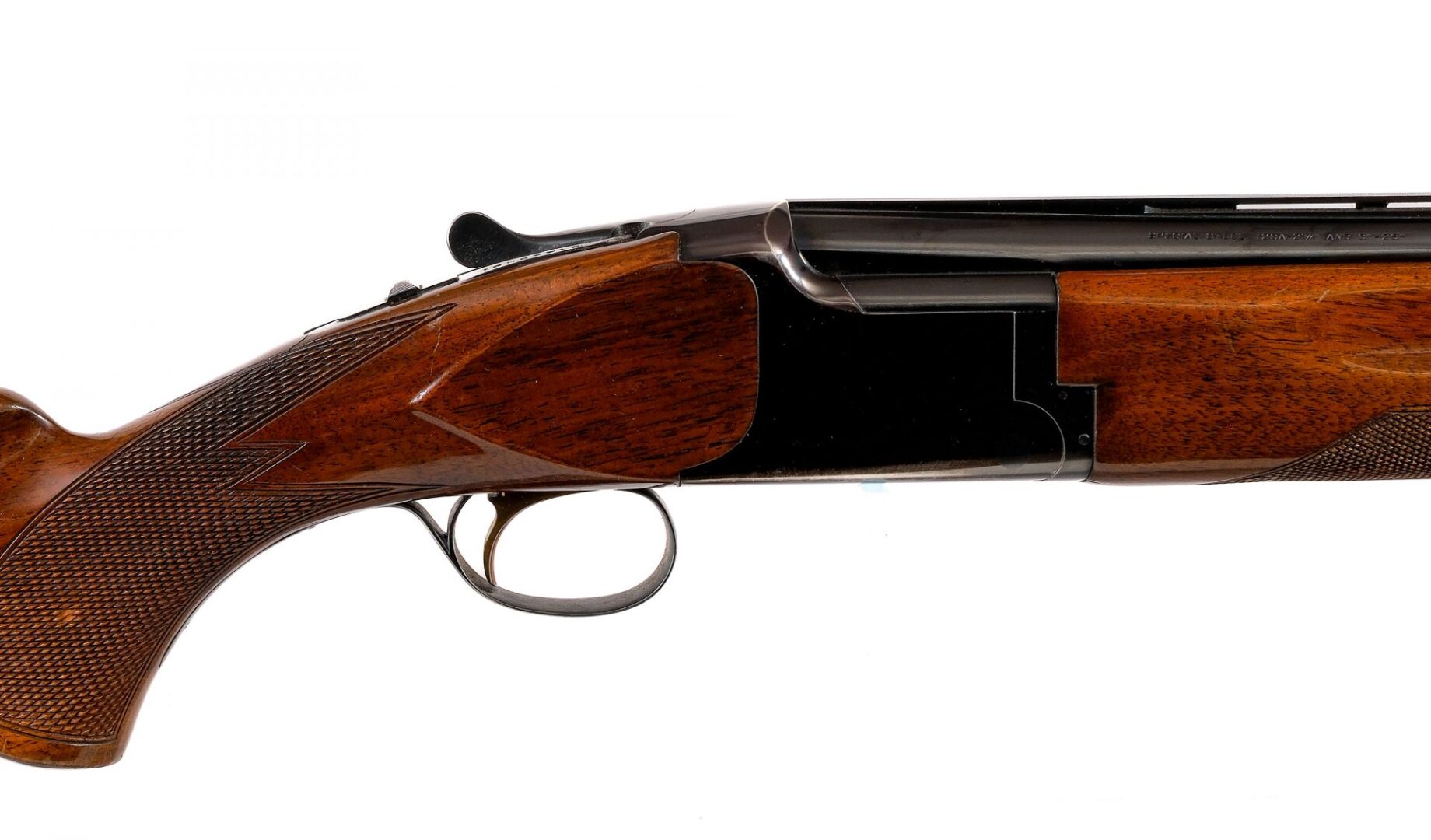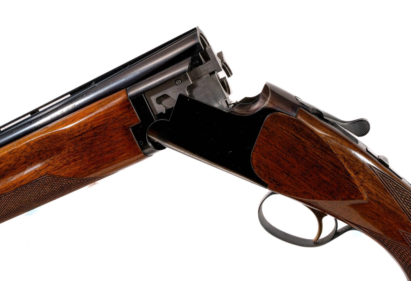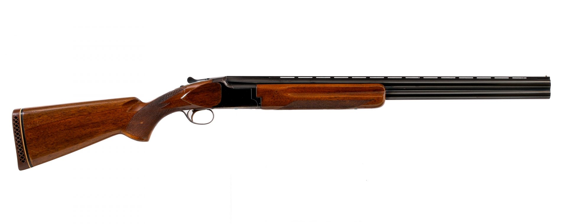 Description Browning Citori in 12 gauge 2 3/4″-3″ with a two round capacity and a 26″ top rib vented over under barrel. Made in Japan. Bores have MOD fixed chokes. Rubber butt pad. Checkered wood stock and front forend. Blued trigger guard, box lock receiver, top lever and barrel. Gold finished trigger. Rear receiver tang slide button safety/barrel selector switch. Receiver has ejectors. Front fixed metal bead sight. Must ship to a C&R or FFL holder. Condition: Good with scratches, wood dings, tiny touches of rust on the trigger guard and finish wear. Clean smooth bores. Barrel Length: 26″ Serial: 21445h57 Manufacturer: BROWNING Gauge: 12 Ga. Year: 1974 Model: Citori Book# 04152