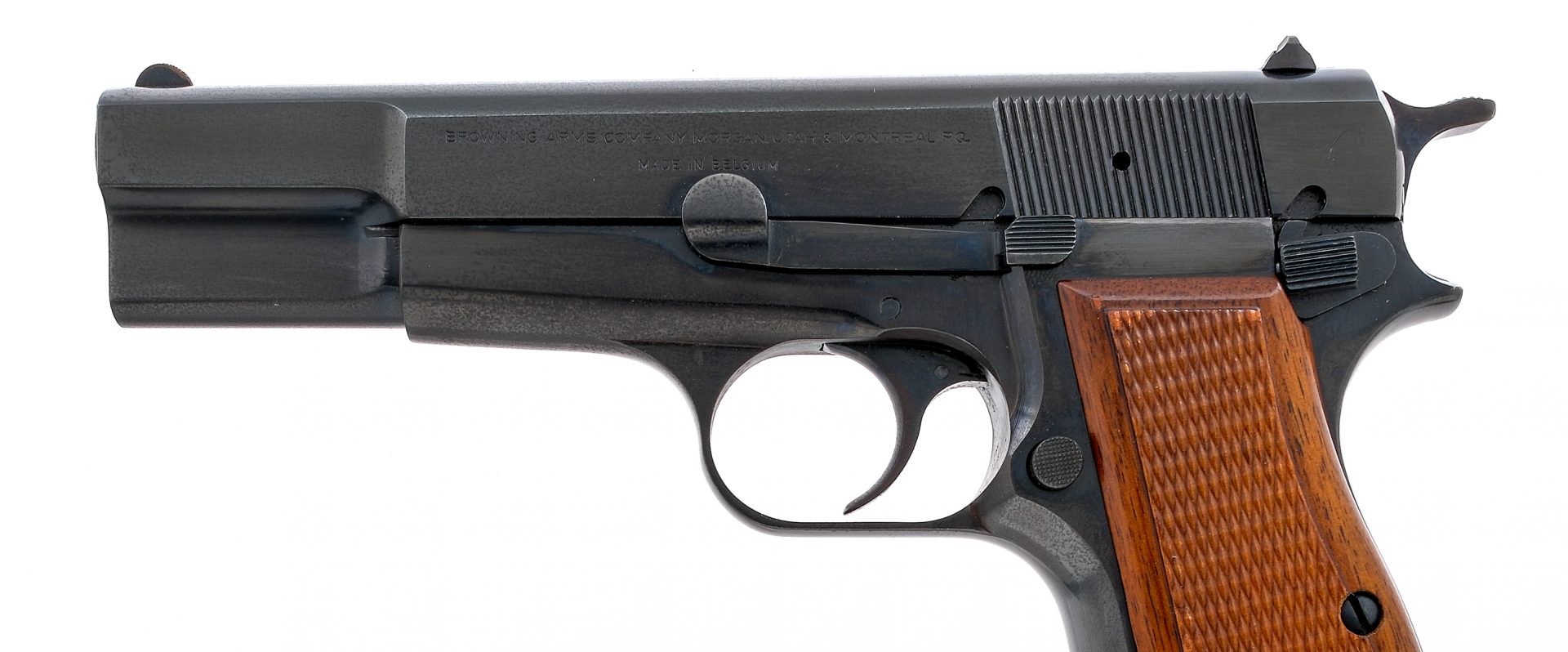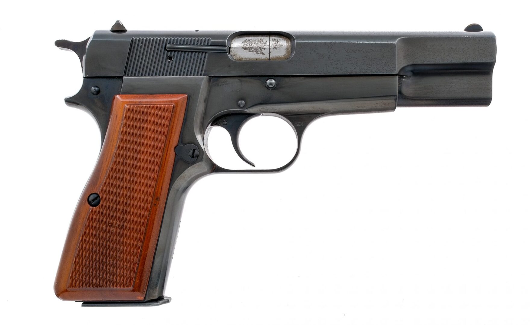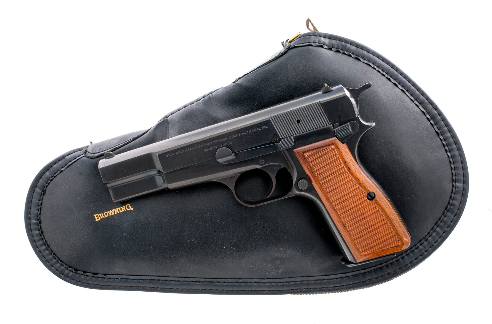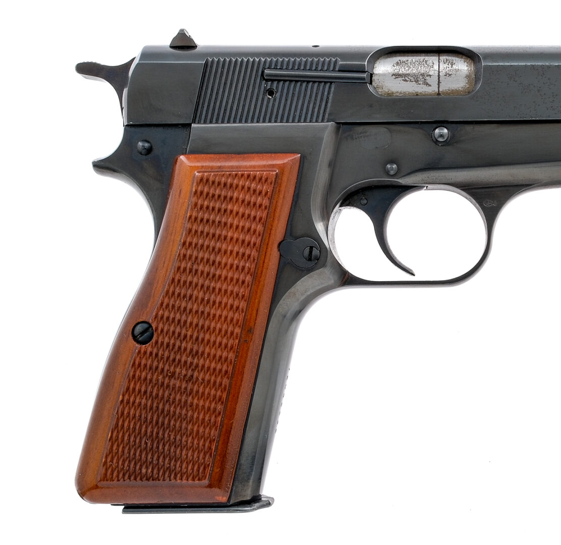 Description Browning Hi Power chambered in 9mm with one, thirteen round removable magazine and a 4.7″ barrel. Dated to 1972 with serial number 72C42232. Blued steel frame with textured push button magazine release and slide stop. Checkered wood grips. Single action trigger and serrated hammer. Frame mounted manual thumb safety. Blued serrated slide with fixed iron sights. Comes in a Browning leather soft case. Must ship to FFL or C&R holder. Condition: Good/Very Good retaining most of its bluing with some light scratches, edge wear, and general handling wear. The main imperfection on this pistol is the light but condensed speckling of metal oxidation throughout most of the pistol but mainly on the left side. Very little wear on the grips with strong checkering. Very clean rifled bore. Barrel Length: 4.7″ Serial: 72C42232 Manufacturer: BROWNING Caliber: 9x19mm Parabellum Model: Hi Power Book# 02209