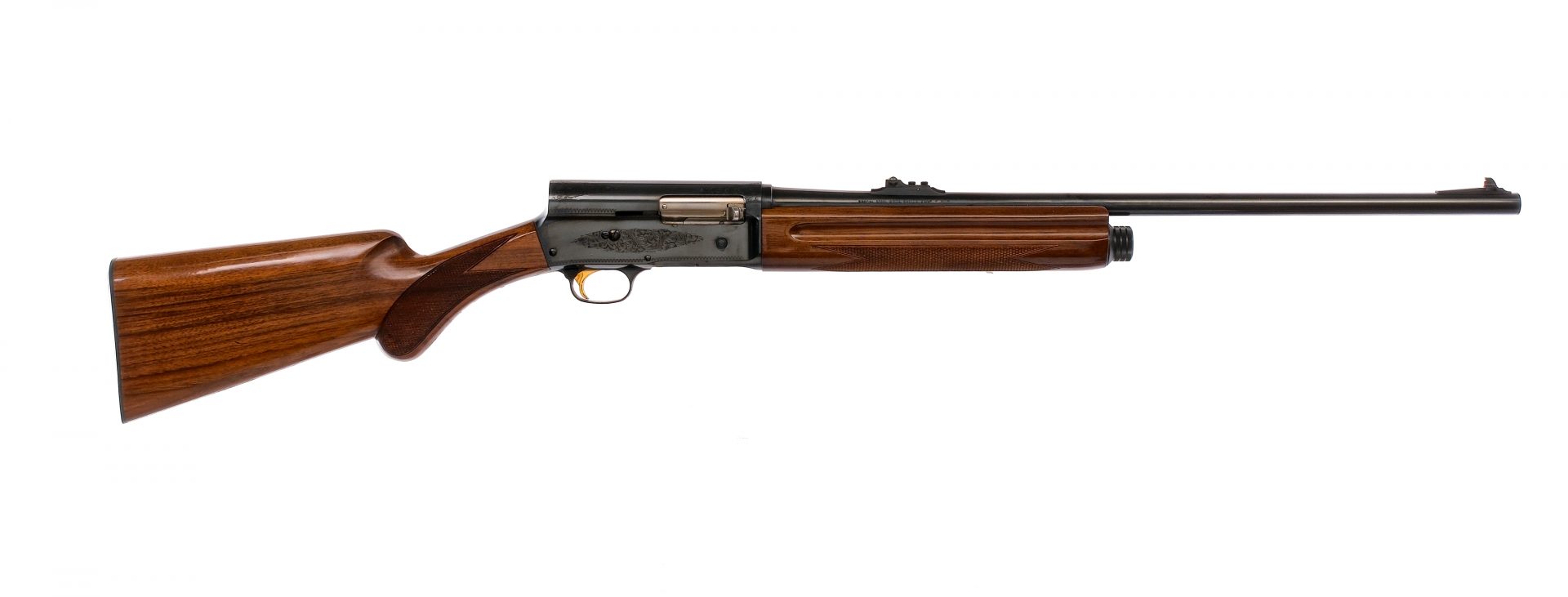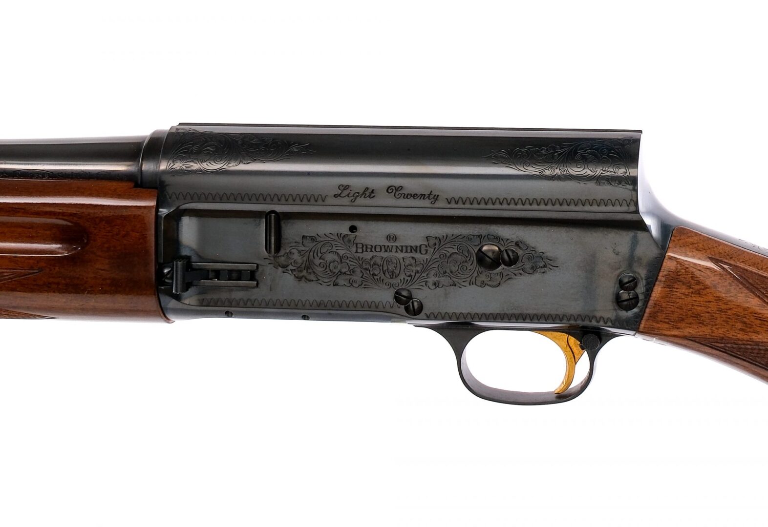 Description Browning Light Twenty in 20 gauge 2 3/4″ with a four round capacity and a 23.5″ MOD fixed choke barrel. Made in Belgium. Black composite butt plate. Checkered pistol grip wood stock and front forend. Blued trigger guard, receiver and barrel. Gold finished trigger. Checkered unfinished charging handle. Rear trigger guard push button safety. Left side magazine cut-off lever. Right side action release button and charging handle. Rear adjustable and front fixed blade sight. Comes in its factory box with matching serial number. Must ship to a FFL holder. Condition: Good/Very Good with light scuffs, handling wear and rust on the magazine cap. Clean smooth bore. Barrel Length: 23.5″ Serial: 20564NY231 Manufacturer: Browning Gauge: 20 Year: 1992 Model: Light Twenty Book# 04947