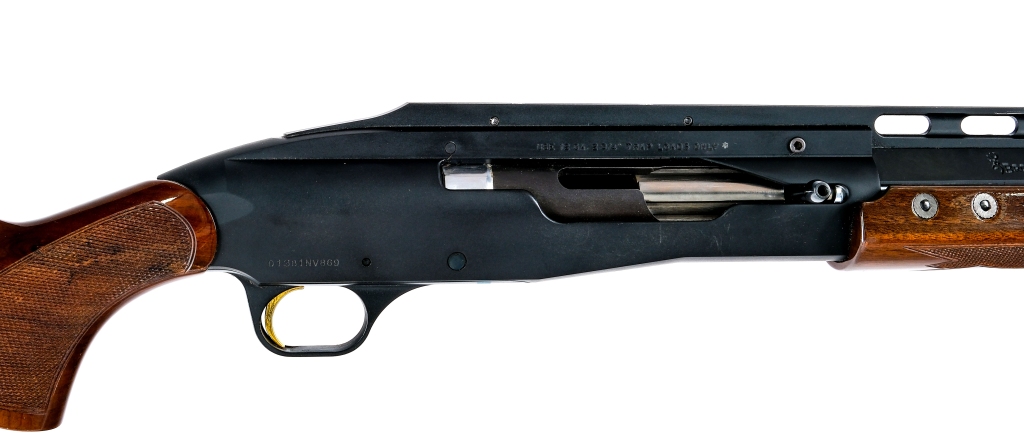 Description Browning Recoilless Trap chambered in 12 gauge for 2 3/4″ Trap Loads with a single-shot capacity and a 30″ vented rib barrel. The barrel has a hand removable IM choke. Matte black finished barrel, rib and alloy receiver. Gold plated single trigger. Dual white bead sights. Checkered wood forend and pistol grip stock with ventilated butt pad. The barrel is missing the band that holds the rib so the front of the rib is loose/free. Must ship to a FFL holder. Condition: Good/Very good with light scratches, sharp edge wear, and cosmetic handling wear. Light internal wear from handling and operational wear. Light scratches and wear on the wood. Bright and clean smooth bore. Barrel Length: 30″ Serial: 01381NV869 Manufacturer: BROWNING Gauge: 12 Ga. Model: Recoilless Trap Book# 08007