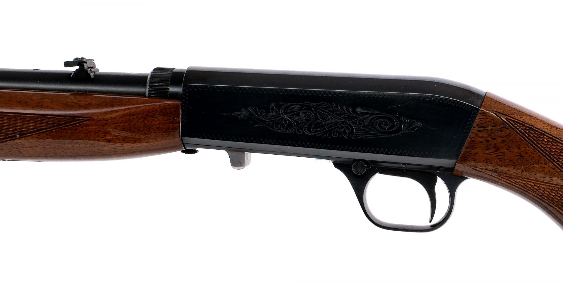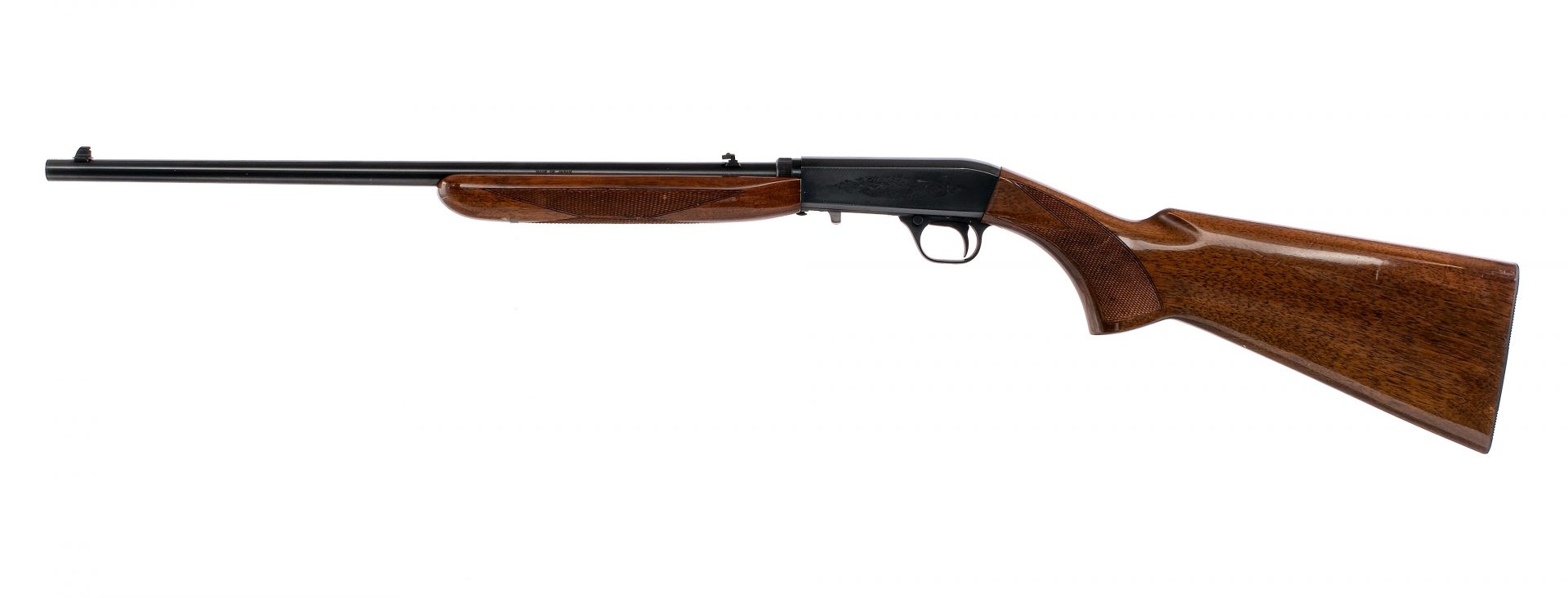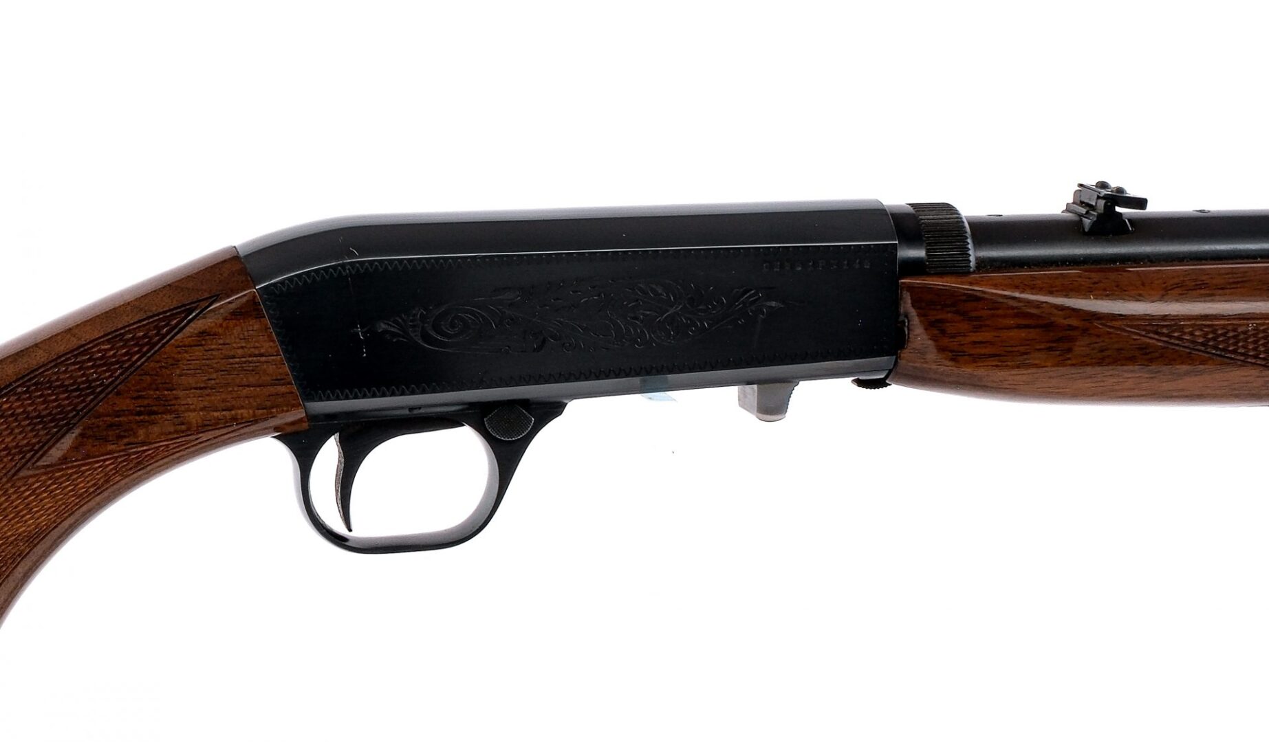 Description Browning SA-22 Grade 1 chambered in .22 long rifle with a ten round tubular magazine and a 19″ barrel. Manufactured in Japan in 1981 with serial number 03561PZ146. Blued barrel, engraved receiver, trigger guard, and trigger. Stainless bolt and serrated charging handle. Cross bolt safety selector and serrated takedown button. Adjustable flip up rear sight and beaded front blade sight. Checkered wood forend and checkered pistol grip stock with metal butt plate. Must ship to a FFL holder. Condition: Very good with some scratches and handling wear on the finish. Light wear on the moving parts from operation. Scratches, scuffs, and dings on the stock. Bright and clean bore with strong rifling. Barrel Length: 19″ Serial: 03561PZ146 Manufacturer: BROWNING Year: 1981 Caliber: .22 Long Rifle Model: SA-22 Grade 1 Book# 04665