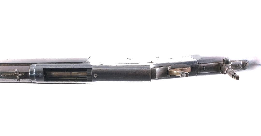 Description Bullard Repeating Arms Company in .38 Cal with a internal magazine tube and a 20″ octagon barrel. Six screw small frame receiver. Checkered factory composite butt plate. Smooth wood stock and front foregrip. Case colored hand lever, trigger and checkered hammer. Blued receiver, magazine tube and barrel. Rear adjustable and front fixed blade sight. Receiver tang mounted adjustable peep hole sight. Antique, No FFL required and ships to buyers home. Sold AS-IS. Condition: Good as antique, appears to be refinished with pitting and rust on and underneath the receiver finish. The barrels finish is discolored from age and patina and has heavy spots of rust. General finish loss, metal oxidation, and patina. Good condition wood with some scratches and dings. Great bore with some light rust and strong rifling. The action does not function properly, has a tendency to get stuck during operation. Sold AS-IS Barrel Length: 20″ Serial: 1705 Manufacturer: BULLARD REPEATING ARMS CO Caliber: .38 Model: Small Frame Lever Action Rifle