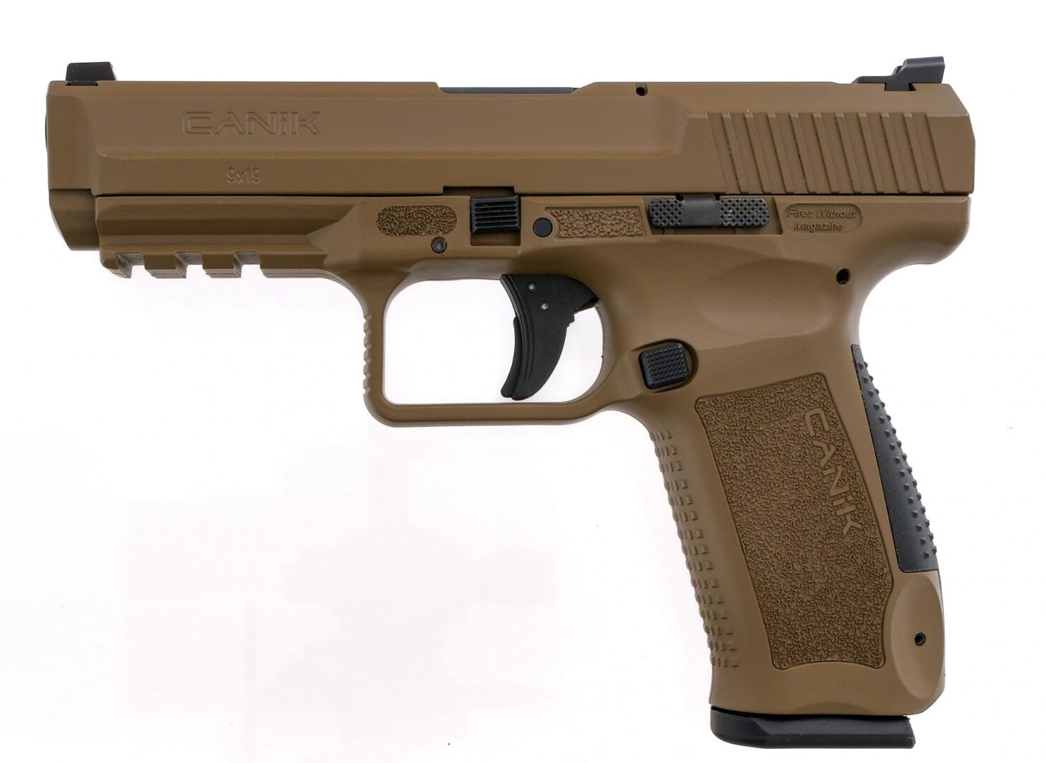 Description Canik TP9SF chambered in 9mm with one, ten round removable magazine and a 4.46″ barrel. FDE textured polymer frame with under barrel 1913 picatinny rail. Short reset single action polymer trigger with trigger shoe safety. Black finished controls with reversable magazine catch. FDE finished serrated nitride slide with Warren Tactical sights. Loaded chamber indicator. Must ship to a FFL holder. Condition: Excellent with very little handling/operational wear. Clean rifled bore. Barrel Length: 4.46″ Serial: T6472-21AT26188 Manufacturer: CANIK Caliber: 9x19mm Parabellum Model: TP9SF Book# 03129
