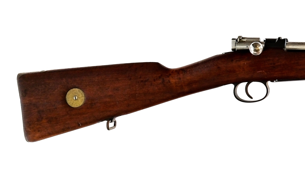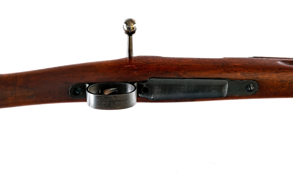 Description Carl Gustaf Stads M1896 chambered in 6.5x55mm Mauser with a five round integral magazine and a 29.1″ barrel. Manufactured in 1912 and imported by SAMCO, marked on the barrel. Blued barrel, bands, receiver, magazine, trigger, and trigger guard. Unfinished bolt with straight handle and flag style safety. Adjustable rear ladder sight and fixed front blade. Smooth wood forend and straight grip stock with stock disk and metal butt plate. Front and rear sling swivels. Must ship to a FFL or C&R Condition: Good/Very Good having been professionally cleaned/restored. Reblued finish with visible wear under the finish. Scratches, contact marks, and handling wear. Some spots of metal oxidation on the finish. The lettering is still sharp and visible. The wood has been sanded and refinished. Light scratches and handling wear. Bright and clean rifled bore. Barrel Length: 29.1″ Serial: 310759 Manufacturer: CARL GUSTAF STADS Year: 1912 Caliber: 6.5x55mm Model: M1896 Book# 07771