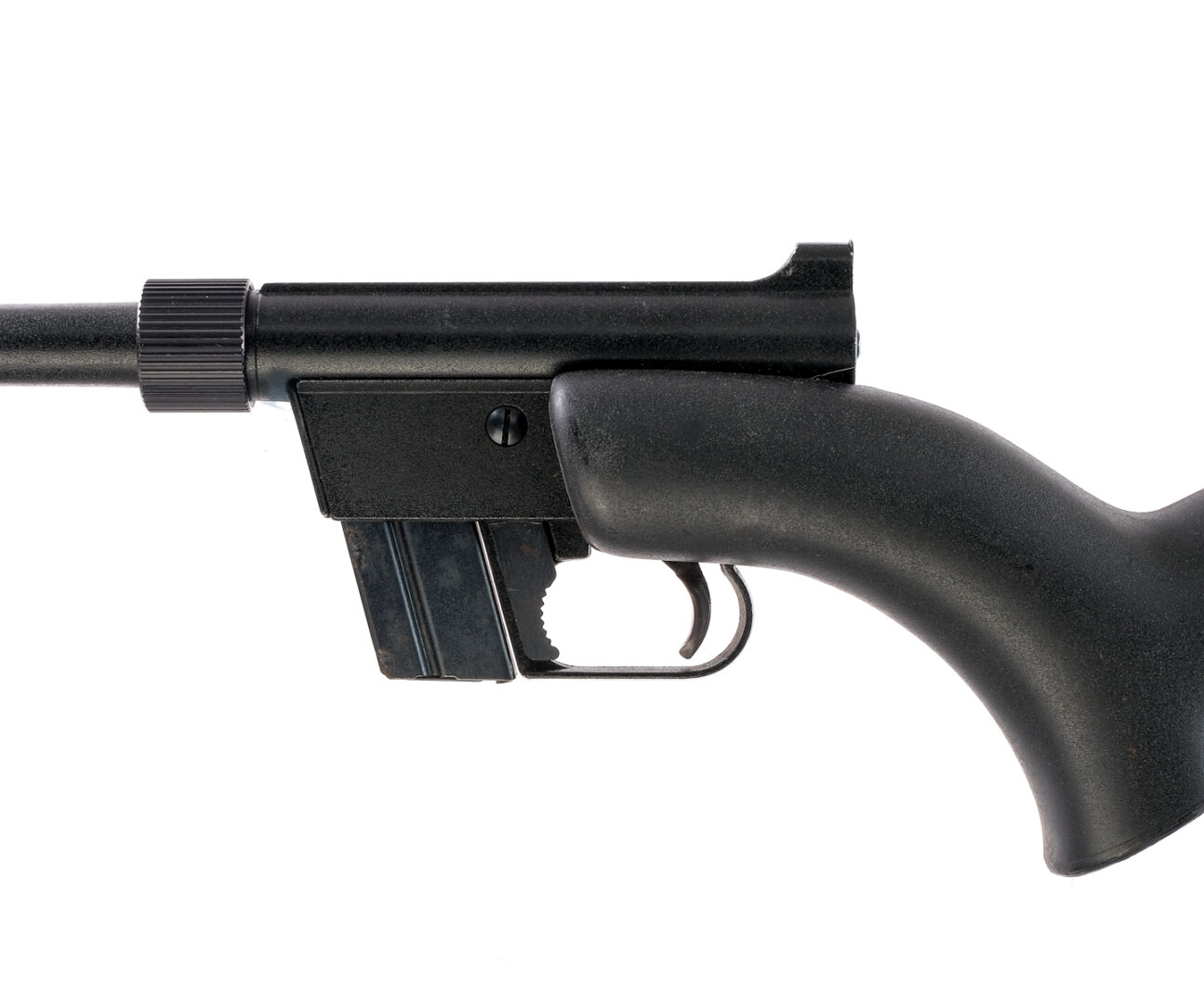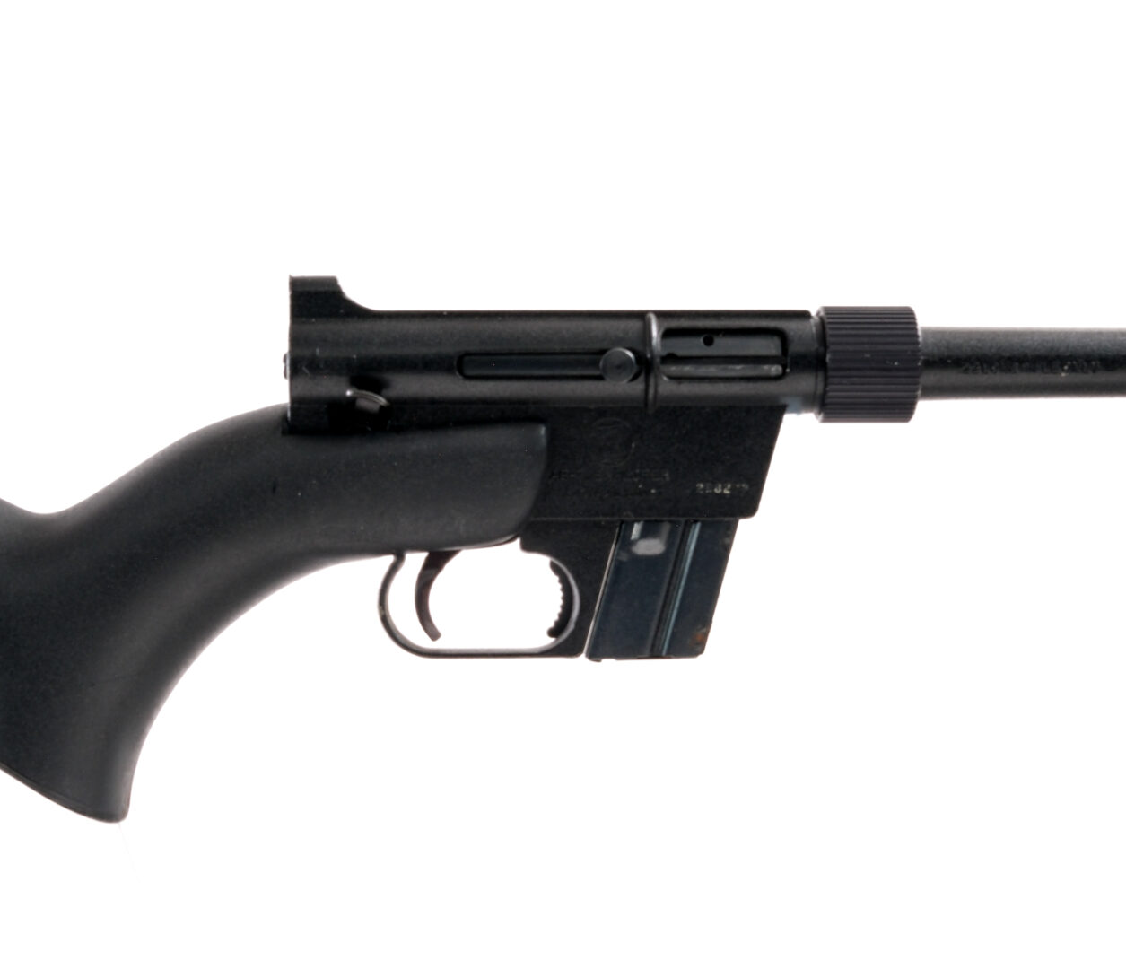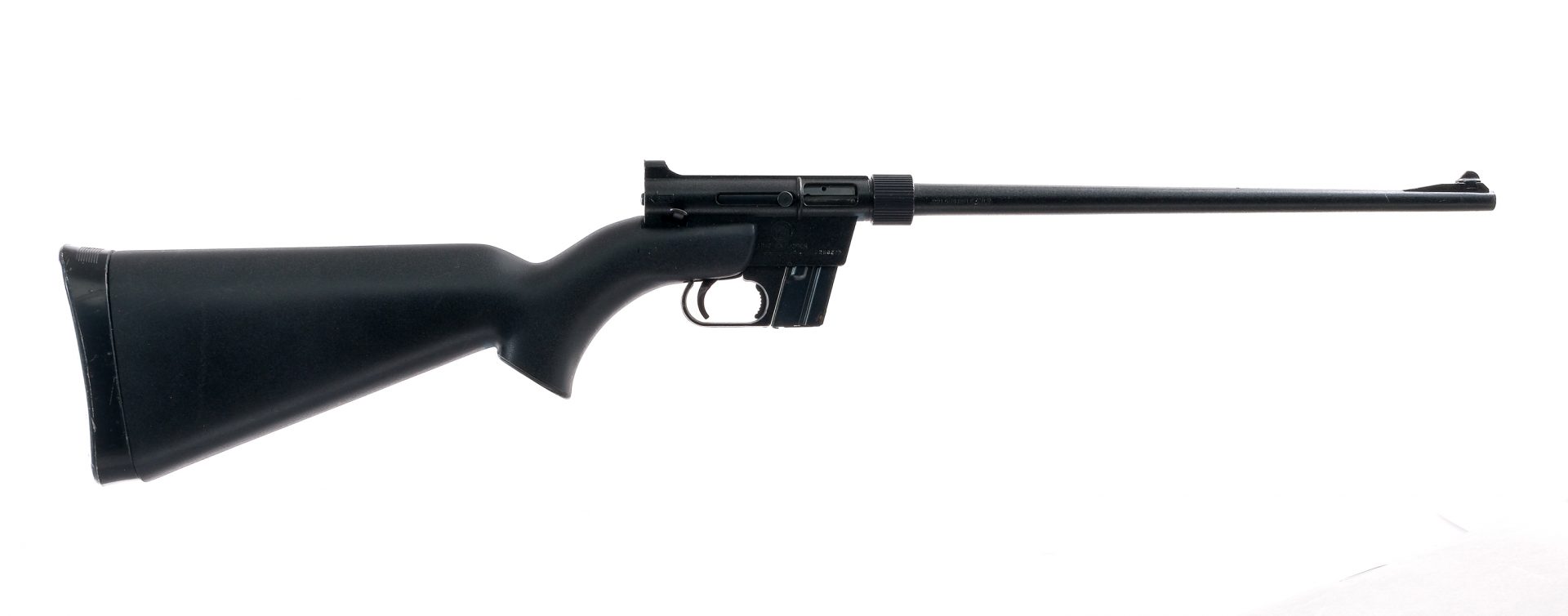 Description Charter Arms AR-7 Explorer in .22 Long Rifle with one, eight round removable magazine and a 16″ barrel. Barrel unscrews and rifle stores itself inside butt stock. Serrated composite butt cap. Black composite stock. Black finished metal trigger guard, receiver and barrel. Blued trigger, serrated magazine release and charging handle. Right side of receiver safety switch and charging handle. Front and rear fixed sights. Must ship to a FFL holder. Condition: Fair with scratches, spots of rust on the removable magazine and small cracks in the composite stock at the wrist and damaged butt cap area. Clean rifled bore. Sold AS-IS. Barrel Length: 16″ Serial: A298273 Manufacturer: Charter Arms Caliber: .22 LR Model: AR-7 Book# 02672
