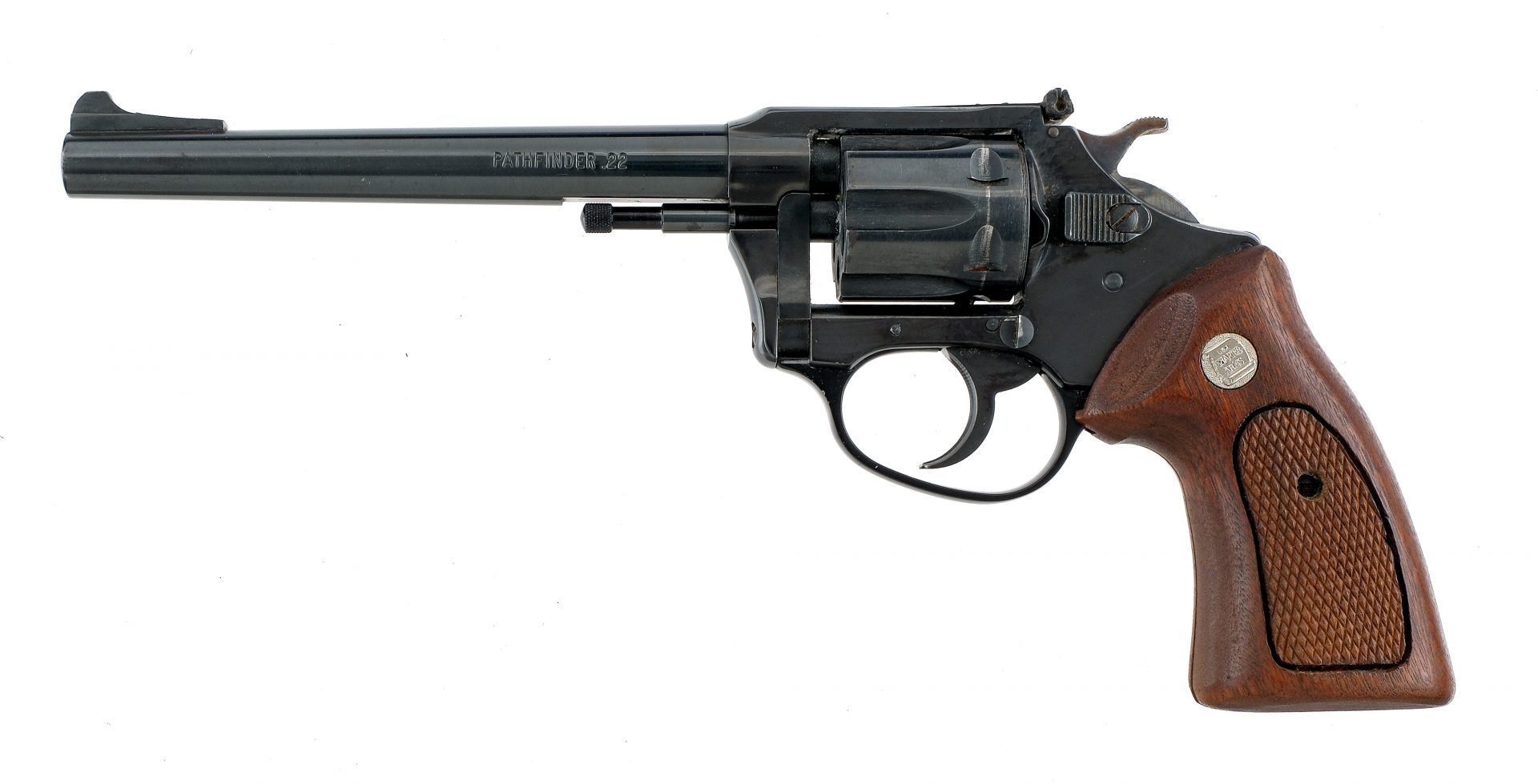Description Charter Arms Pathfinder chambered in .22 long rifle with a six-shot cylinder and a 6″ barrel. Blued barrel, frame, fluted cylinder, cylinder release, and double action trigger. Case colored double action hammer. Checkered wood grips with charter arms medallions. Adjustable rear sight and fixed front blade. Must ship to a FFL holder. Condition: Very good with some scratches and general handling wear on the finish. Cylinder turn line and other operational wear. Some small speckling of metal oxidation mainly on the cylinder. Some scratches and wear on the grips. Bright and clean bore with strong rifling. Barrel Length: 6″ Serial: 563183 Manufacturer: CHARTER ARMSĀ Caliber: .22 Long Rifle Model: Pathfinder Book# 04861