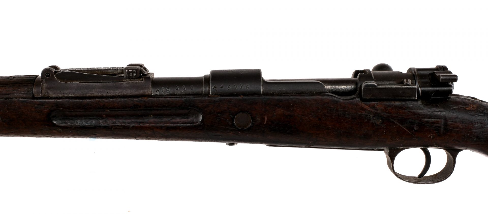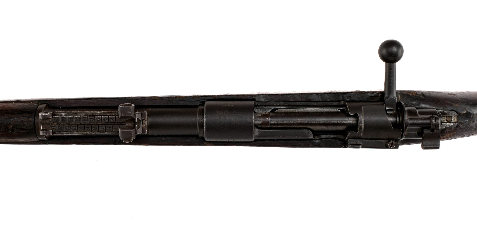 Description Chinese Type 24 Chiang Kai-Shek Rifle (Chinese Mauser) in 7.92x57mm (8mm Mauser) with a five round capacity and a 24″ barrel. Metal butt plate. Smooth wood stock and front forend. Blued trigger guard, trigger, receiver , bolt and barrel. Rear bolt safety switch. Rear left side of receiver bolt release. Under barrel fixed bayonet lug, missing removable cleaning rod. Rear flip up adjustable and front fixed blade sight. Metal loops to mount a shoulder sling. Must ship to a C&R or FFL holder. Condition: Fair with scratches, rust, finish wear/loss and wood damage. Barrel Length: 24″ Serial: A15778 Manufacturer: Jinling Arsenal China Caliber: 7.92x57mm Model: Type 24 Chaing Kai Shek Year-Range 1935-1949 Book# 04122