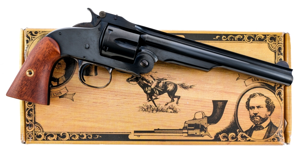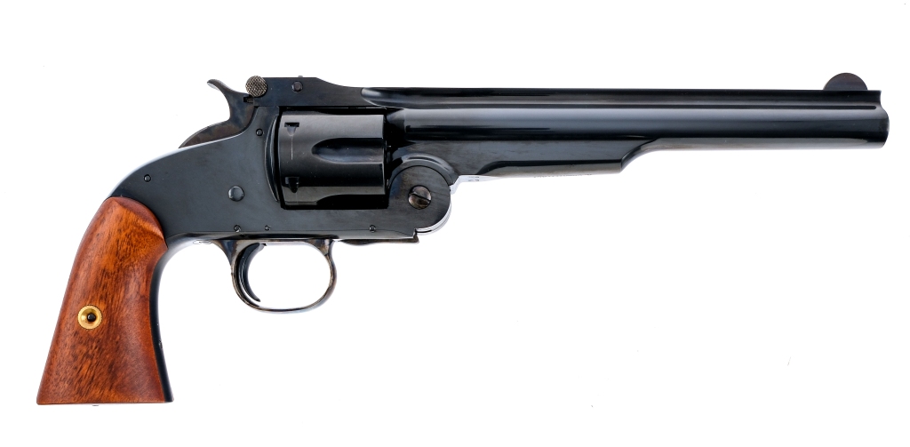 Description Cimarron No. 3 American 1st Model chambered in .45 Colt with a six-shot cylinder and a 8″ barrel. Manufactured in Italy by Uberti, and imported by Cimarron. Blued barrel, frame, fluted cylinder, and single action trigger. Case colored trigger guard, hammer, and latch. Smooth wood grips. Rear notch and fixed front blade. Comes in its factory box. Must ship to a FFL holder. Condition: Dealer New Old Stock in Box. Barrel Length: 8″ Serial: CS0297 Manufacturer: CIMARRON F.A. CO. Caliber: .45 Colt Model: No. 3 American 1st Model Book# 07983