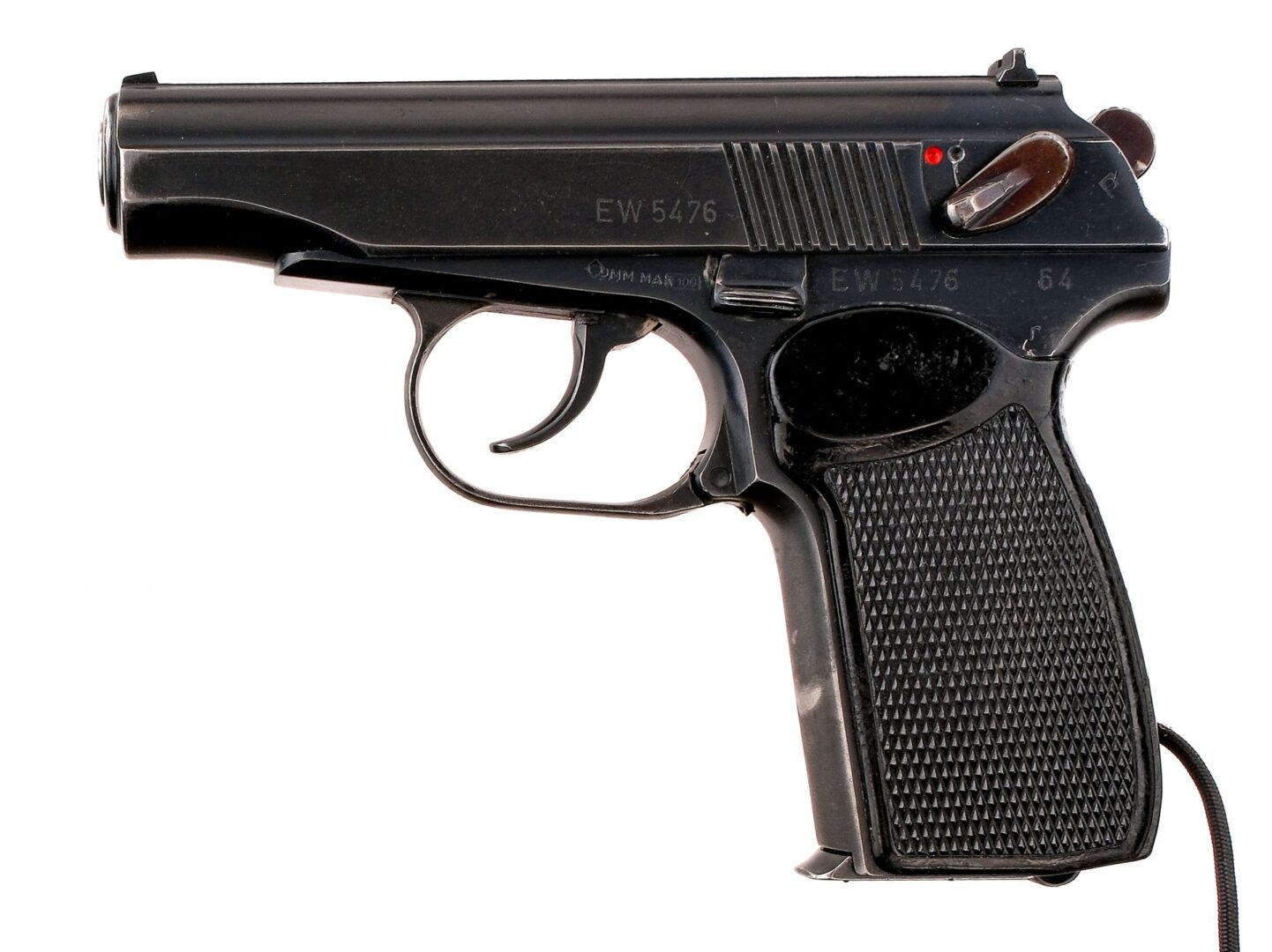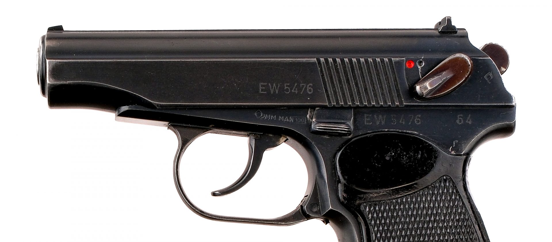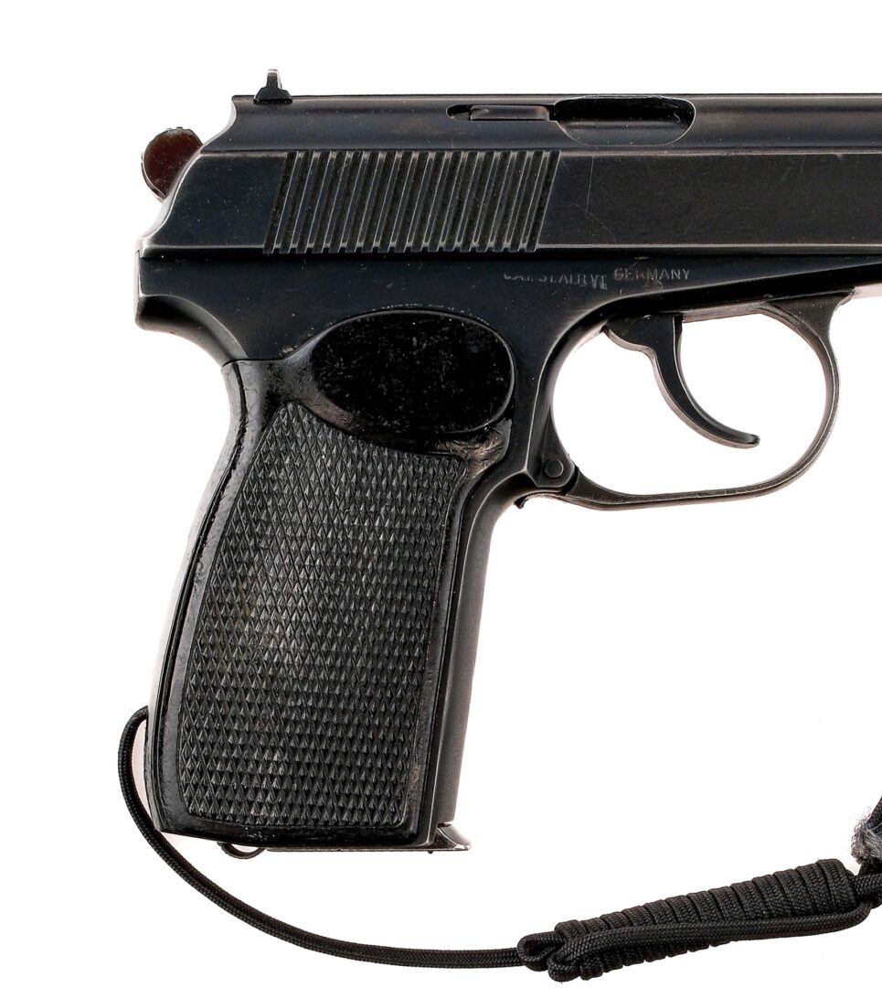 Description Cold War Era Ernst Thalmann East German Makarov chambered in 9x18mm MAK with two, eight round removable magazines and a 3.7″ barrel. Manufactured in East Germany in 1964 and imported by C.A.I. ST ALB VT, marked on the right side of the frame. Blued steel frame with heel magazine release and textured polymer grips with lanyard loop. Double/single action trigger and exposed hammer. Blued serrated slide with manual thumb safety. Fixed iron sights. The left side of the frame is marked “[K100]” AND “64”. Must ship to a FFL or C&R holder. Good/Very Good with light scratches, muzzle wear, and general wear from normal handling/operation. Some finish wear/loss on the contact points and sharp edges. Spots/speckling of metal oxidation. Scratches and scuffs on the grips. Bright and clean rifled bore. Barrel Length: 3.7″ Serial: EW5476 Manufacturer: Ernst Thaelmann Year: 1964 Caliber: 9x18mm Makarov Model: Makarov Book# 04273