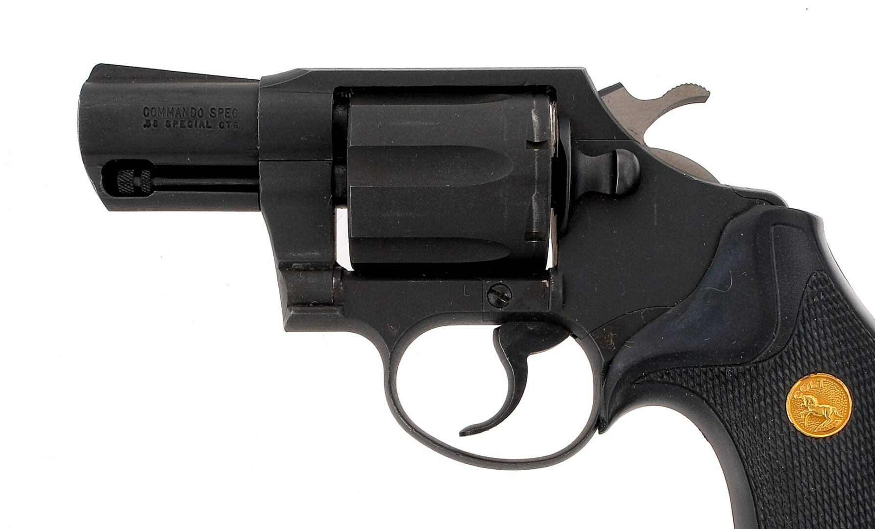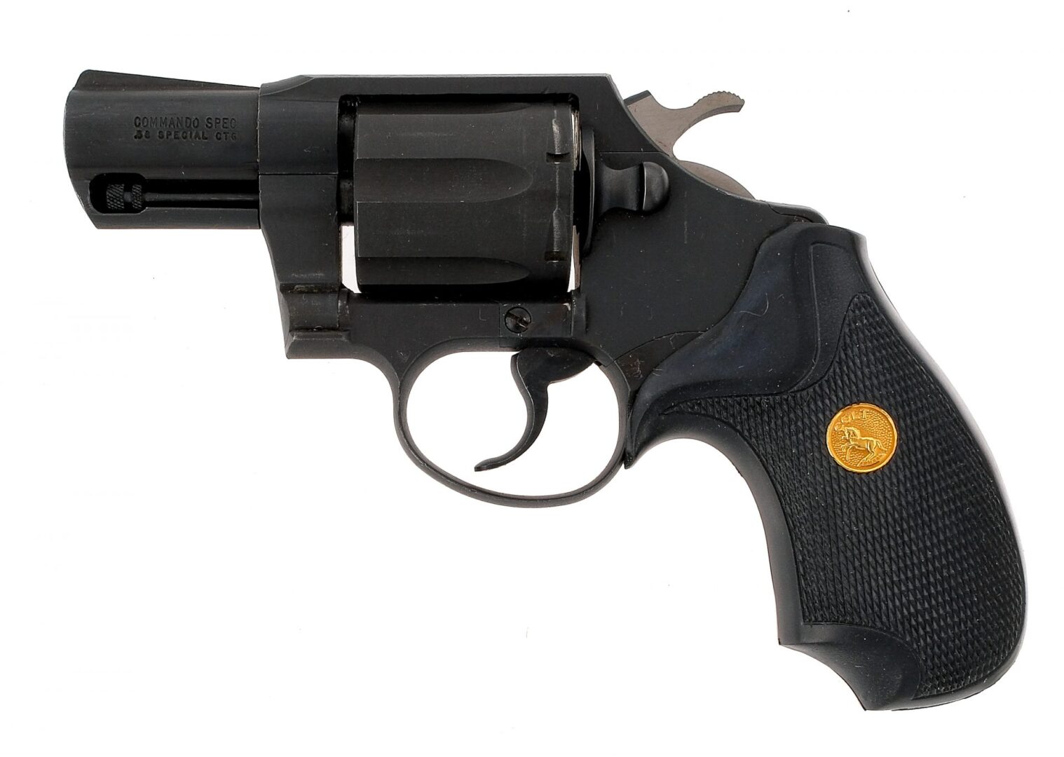 Description Colt Commando Special chambered in .38 special with a six-shot cylinder and a 2″ barrel. Manufactured in 1983 with serial number P67228. Matte finished barrel, frame, fluted cylinder, and cylinder release. Double action trigger and hammer. Checkered rubber Pachmayr presentation grips with gold Rampant Colt medallions. Fixed iron sights with rear notch and low profile front blade. Comes in its factory box with matching serial number and paperwork. Must ship to a FFL holder. Condition: Very good with light scratches and finish wear from handling. Cylinder turn line and wear on the moving parts from operation. Clean rifled bore. Barrel Length: 2″ Serial: P67228 Manufacturer: COLT Year: 1983 Caliber: .38 Special Model: Commando Special Book# 04570