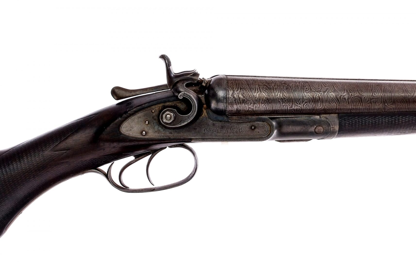 Description Colt’s PT. F.A. Mfg. Co. 12 gauge hammer gun chambered for 2-3/4″ shells. This example dating to 1882 features 30″ Damascus barrels choked MOD/CYL, solid concave rib with single bead, knurled hammers and release lever, double triggers, “Colt’s Pt F A Mfg Co” marked side plates, and finely checkered hardwood forearm and stock with Rampant Colt logo. LOP=14-1/4″, DOC=2-5/8″, DOH=3-3/4″, OAL=46-5/8″, and WT=8.2 lbs. Antique and ships direct to buyer. Condition: Excellent overall condition showing a nice aged patina and impressive Damascus folds. There is wear from use especially to the checkering and there are some marks in the stocks. The forend shows wear on the left side about an inch from the end. The bores still shine with evident corrosion marks that are more prominent towards the chambers. The lockup is tight and hammers strong and crisp. Barrel Length: 30″ Serial: 11870 Manufacturer: Colt Gauge: 12 Ga. Year: 1882 Model: 1878