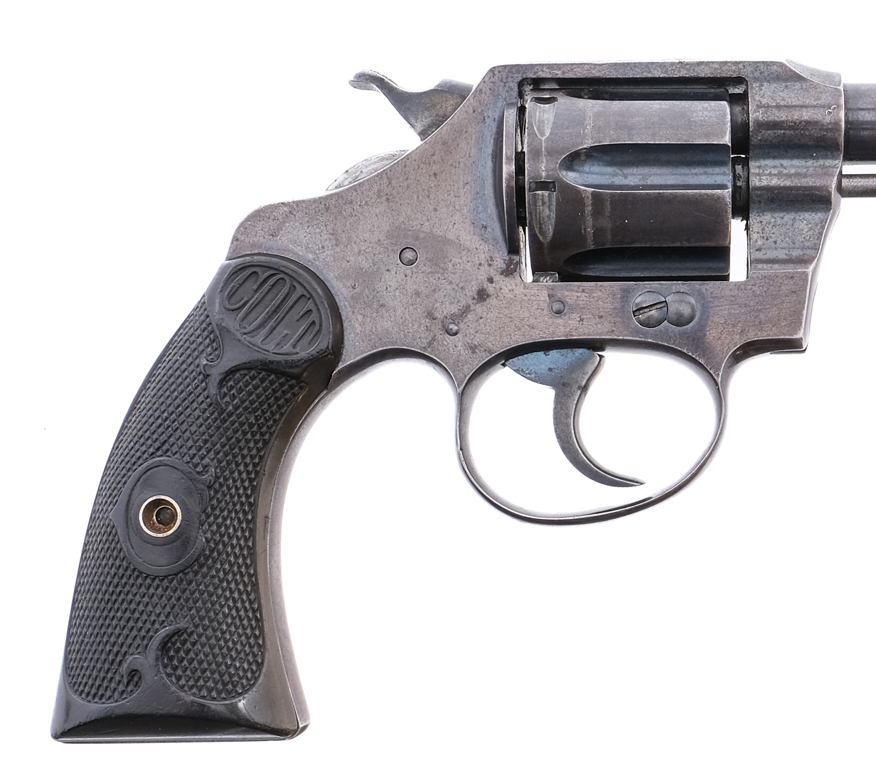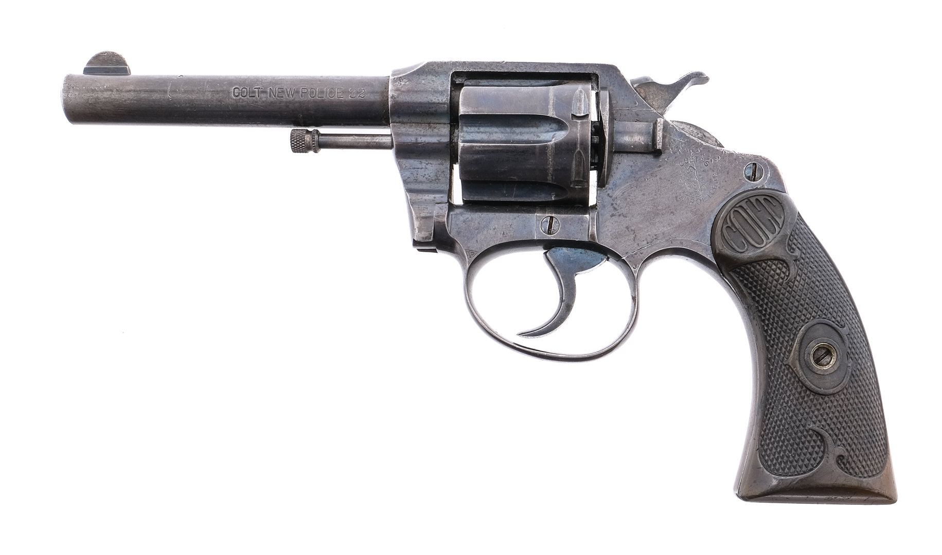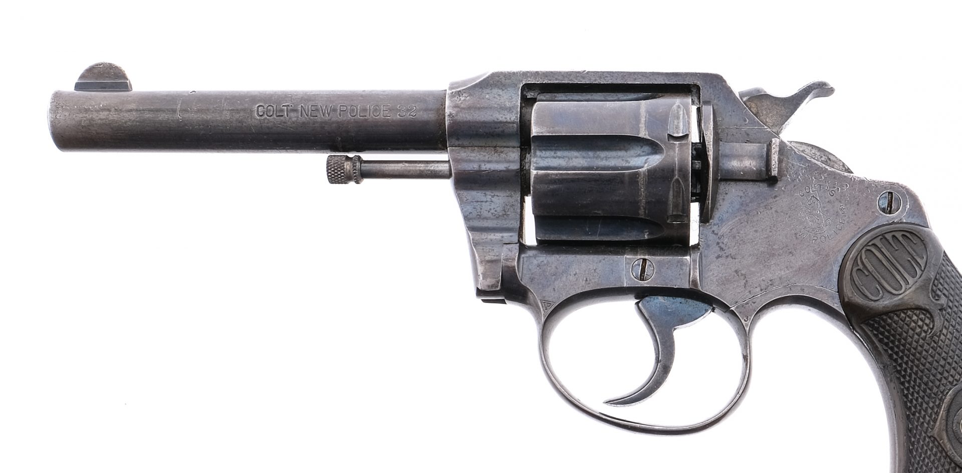 Description Colt New Police in .32 New Police with a six round capacity and a 4″ barrel. Checkered composite grip plates. Blued frame, untextured trigger, checkered hammer, cylinder and barrel. Left side of frame cylinder release. Front fixed blade sight. Must ship to a C&R or FFL holder. Condition: Good with finish wear/loss, dings, rust/pitting and scratches. Clean rifled bore. Barrel Length: 4″ Serial: 66848 Manufacturer: Colt Caliber: .32 NP Model: New Police Year-Range 1896-1907 Book# X-306A