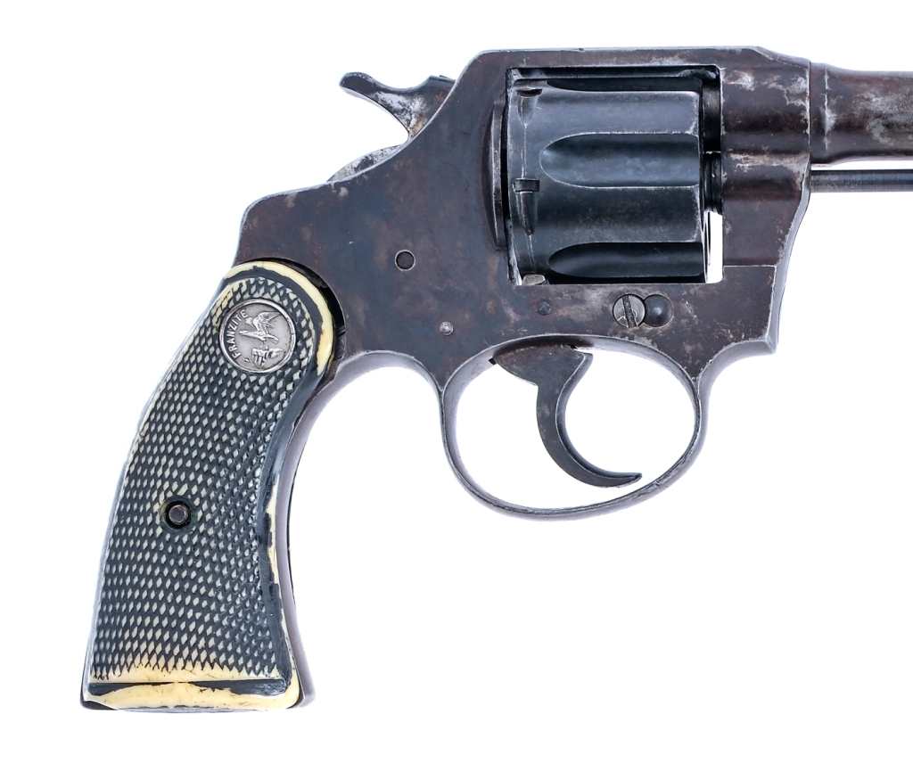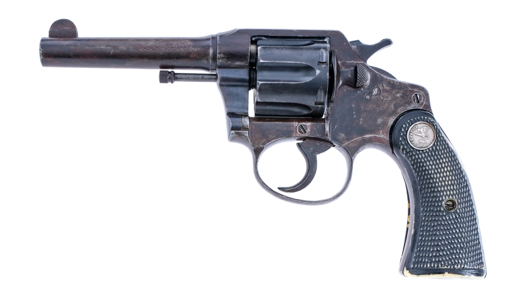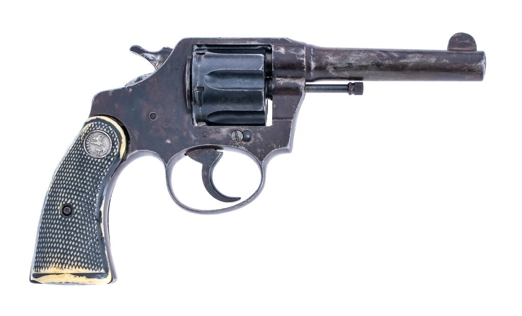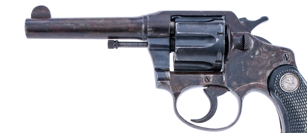 Description Colt Police Positive in .38 Special with a six round capacity and a 4″ barrel. Made in Hartford Connecticut in 1915. Checkered aftermarket Franzite composite grip plates. Blued trigger, frame, checkered hammer, cylinder and barrel. Left side of frame checkered cylinder release. Rear notch and front fixed blade sight. Must ship to a C&R or FFL holder. Condition: Fair with scratches, heavier finish wear/loss, rust and handling wear. Clean rifled bore. Barrel Length: 4″ Serial: 115023 Manufacturer: Colt Year: 1915 Caliber: .38 Spl Model: Police Positive Book# 05713