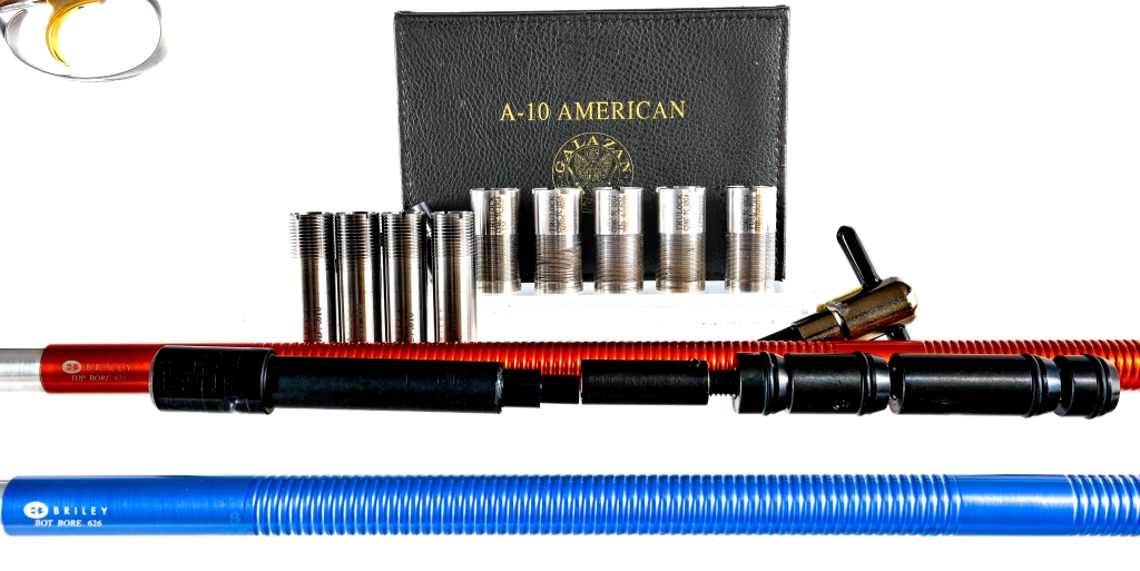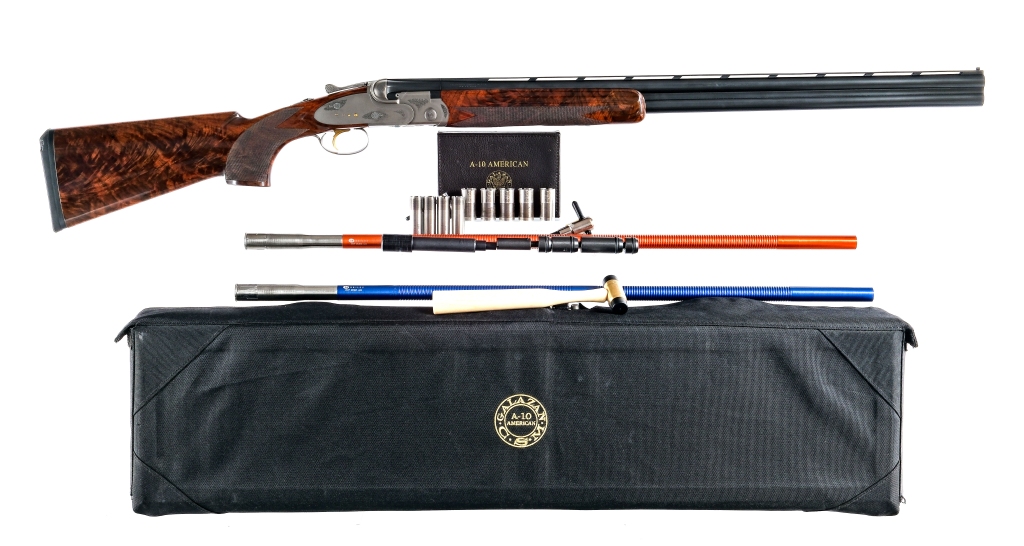 Description Connecticut Shotgun Manufacturing Company Model A-10 American in 12 gauge 2 3/4″-3″ with a two round capacity and a 30″ over under top rib vented barrel. Made in New Britain Connecticut. Comes with two Briley 20 gauge bore tubes. Rubber butt pad. Checkered premium walnut pistol grip stock and front forend. Coin finished laser engraved side lock receiver, knurled top lever and trigger guard. Gold finished trigger. Blued over under barrel. Rear lock tang located slide button safety and barrel selector. Front fixed sight. Comes in its Factory locking hard case with set of CT Shotgun Galazan TRULOCK removable choke tubes, removal tool, Briley barrel tubes in 20 gauge with removable S-3 SKT .621 chokes installed, barrel tube removal hammer and tool, case of Briley chokes tubes with removal tool, instruction manual-leather bound with previous owners name on it. Comes with Gunsmith work receipt for a Cast Off stock job. Must ship to a FFL holder. Condition: Excellent with light wood dings, small damage spot to the butt pad and handling wear. Clean smooth bores. Measurements: LOP @ Heel= 14 1/2″ LOP @ Toe= 14 3/4″ Choke: O= (SK1) U= (SK1) Drop @ Comb = 1 1/2″ Drop @ Heel = 2 1/4″ Weight= 8.2 lbs. Cast Off Barrel Length: 30″ Serial: A10-001098 Manufacturer: CT Shotgun Mfg Co Gauge: 12 20 Model: A-10 American Book# 08343