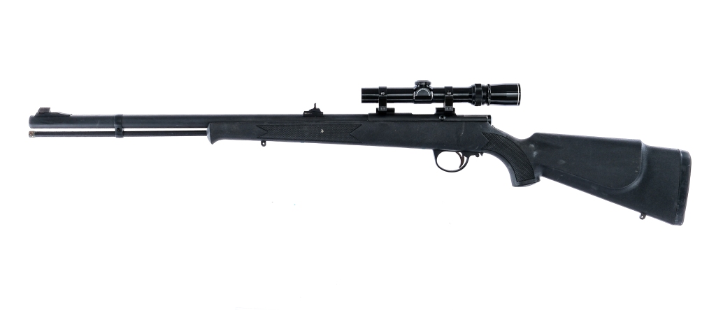 Description Connecticut Valley Arms Firebolt in .54 caliber with a single round capacity and a 24.5″ barrel. Serrated rubber butt pad. Checkered composite Monte Carlo style stock and front forend. Blued trigger, bolt handle, receiver and barrel. Rear trigger guard safety switch. Under barrel removable ramrod. Rear adjustable Williams and front fixed blade sight. Mounted with a Thompson Center Arms 1.5x 5×20 scope with clear glass and a duplex reticle. No FFL required and ships to MOST buyers homes. Condition: Good with scratches, handling wear and oxidation on the cleaning rod. Clean rifled bore. Barrel Length: 24.5″ Serial: 61-13-035291-97 Manufacturer: Connecticut Valley Arms Caliber: .54 Model: Firebolt