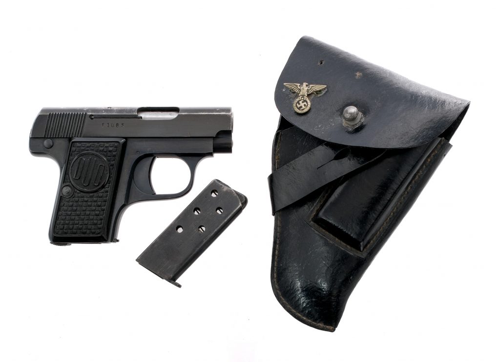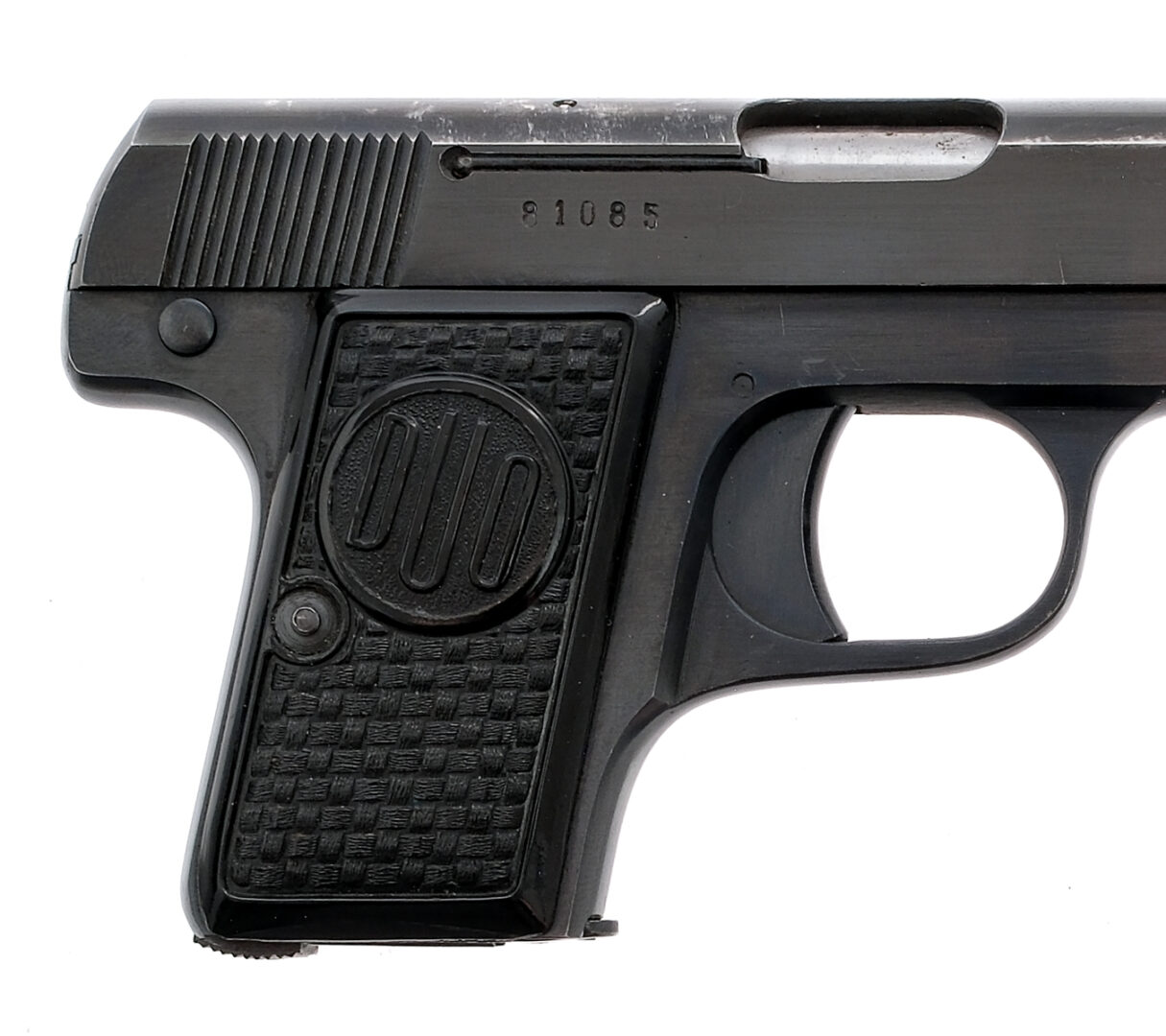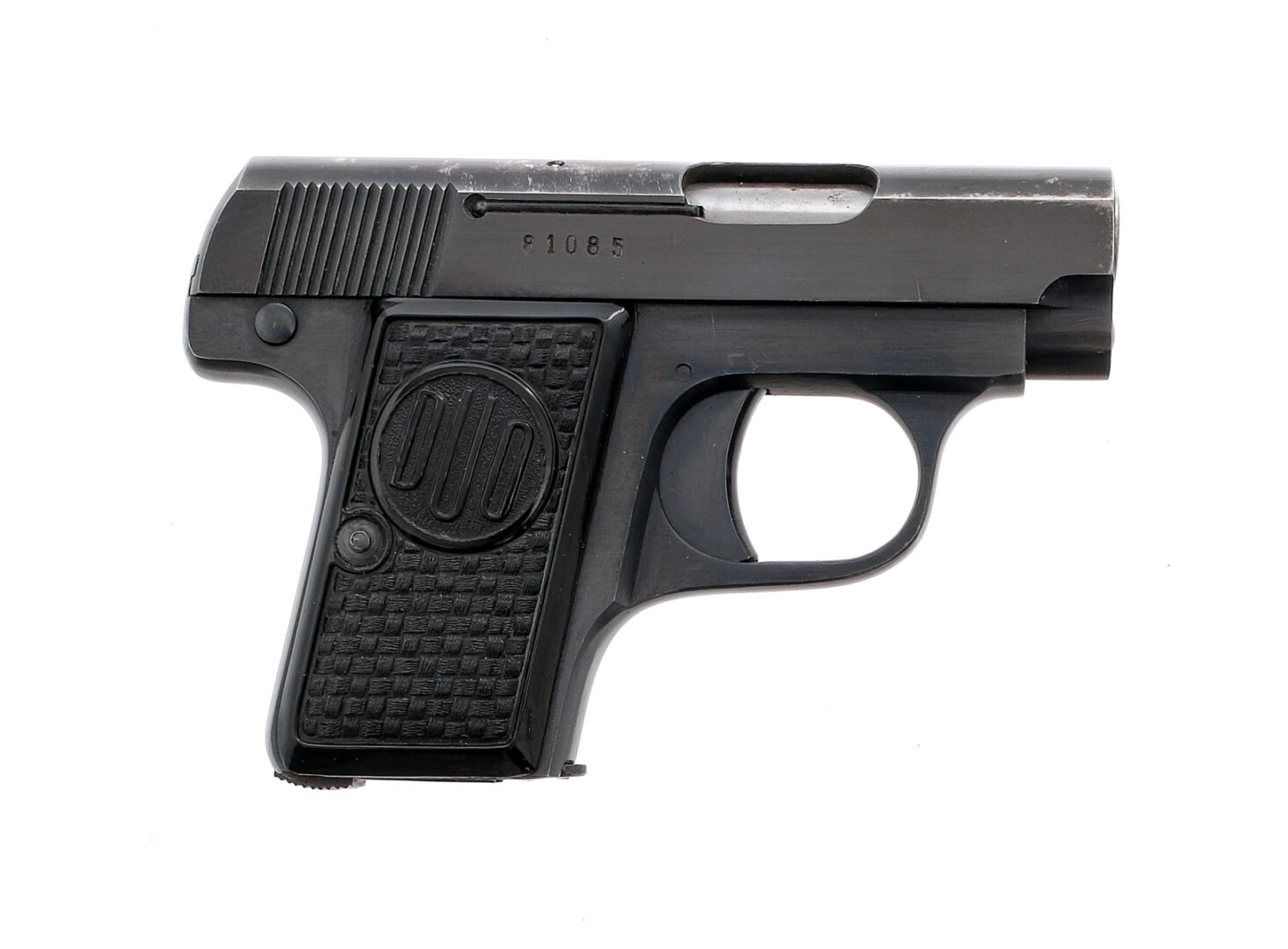 Description Czech made “Duo” pistol chambered in 6.35mm with a 2″ barrel and 2, six round magazines. Design by Frantisek Dusek and manufactured by CZ, this model being made in 1943. Blued finish slide, frame, and trigger. Black composite grips with a “woven” texture on it. Included holster with mag pouch. Will ship to a C&R or FFL holder. Condition: Very good / Excellent with some finish loss on hard edges, top left side of slide, and back of frame under the slide. Has minor scratching throughout. Rifled bore is very bright and sharp. Barrel Length: 2″ Serial: 81085 Manufacturer: F DUSEK Year: 1943 Caliber: .25 ACP Model: Duo Book# 02937