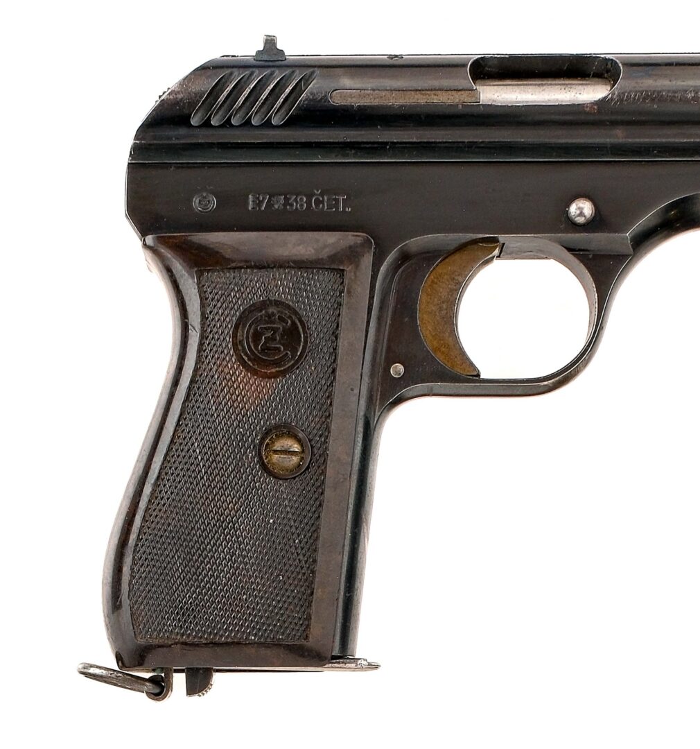 Description CZ VZ-24 in .380 ACP with one, eight round removable magazine and a 3.56″ barrel. Made in Czechoslovakia. Checkered composite grip. Blued frame and serrated slide. Straw finished solid trigger and hammer. Magwell located magazine release and lanyard loop. Left side of frame safety button and release. Front and rear fixed sights. Matching serial number on the frame and slide. Must ship to a C&R or FFL holder. Condition: Good with light scratches and spots of finish wear/loss and rust. Clean rifled bore. Barrel Length: 3.56″ Serial: 193416 Manufacturer: CZ Year: 1938 Caliber: .380 ACP Model: VZ 24 Book# 04272
