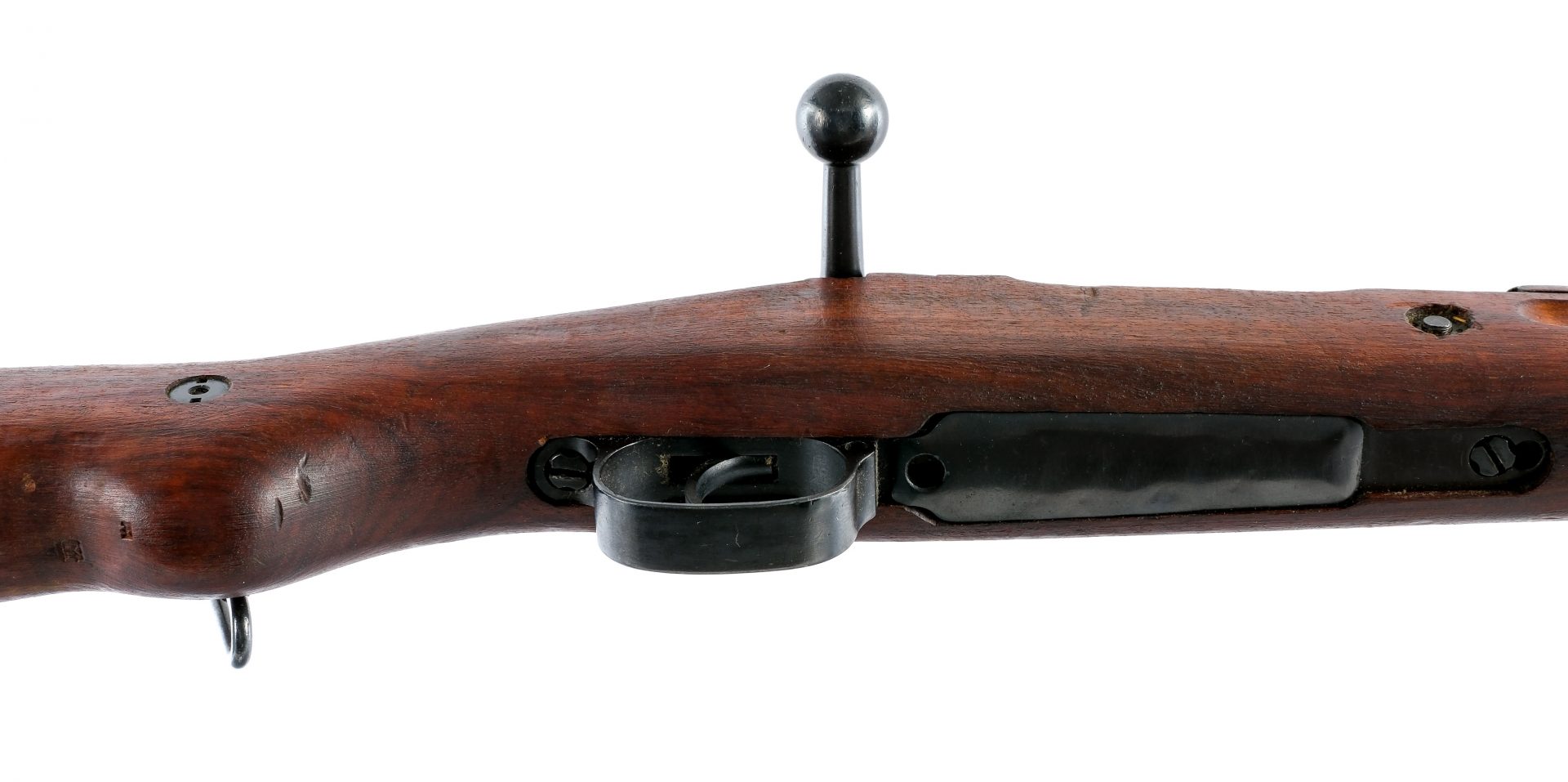 Description Czech Model VZ-24 in 7.92x57mm (8mm) with a five round capacity and a 23.5″ barrel. Import marked on the underside of barrel by TG KNOX TN. Blued metal butt plate. Smooth wood stock and front forend. Blued trigger guard, trigger, receiver, bolt and barrel. Rear bolt safety switch. Rear left side of receiver bolt release. Under barrel fixed bayonet lug and removable cleaning rod. Rear flip up adjustable and front fixed blade sight. Metal loops for mounting a shoulder sling. Serial number matching on the receiver and wood stock. Force matched serial number in electric pencil on the bolt. Must ship to a C&R or FFL holder. Condition: Good with the gun being refinished at some point, scratches, wood dings and handling wear. The rifled bore has very light rust within the grooves with strong visible rifling. Barrel Length: 23.5″ Serial: RR9990 Manufacturer: Czech Zbrojovka Brno Caliber: 8mm Model: VZ 24 Year-Range 1924-1942 Book# 05491
