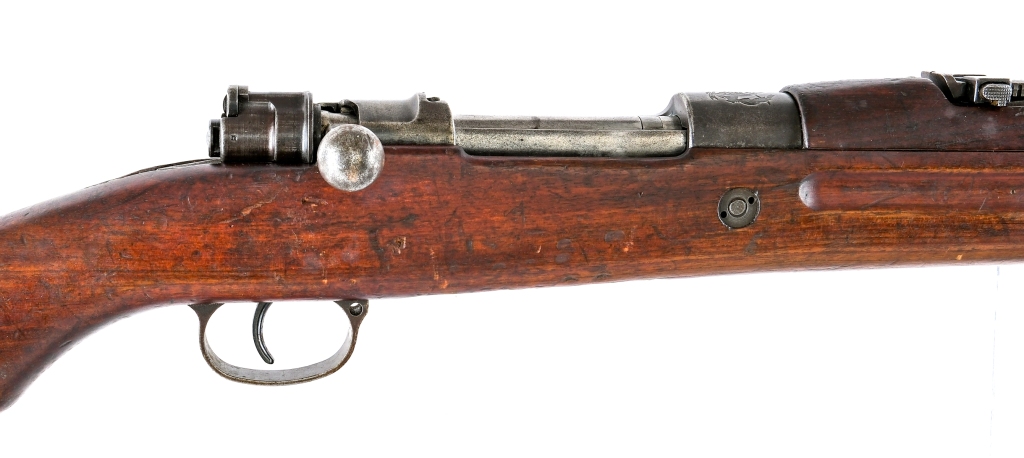 Description CZ VZ-24 Guatemala Contract Rifle in 7x57mm which is 7mm Mauser with a five round capacity and a 23.5″ barrel. No import marks on this rifle. One of only 4,000 made in 1937 for Guatemala. Finish worn metal butt plate. Smooth wood stock and front forend. Blued trigger guard, trigger, receiver and barrel. Steel bolt with rear safety. Under barrel fixed bayonet lug. Rear flip up adjustable and front fixed blade sight. Metal loops for mounting a shoulder sling. Non matching serialized bolt. Syrian writing on the bottom right side of stock. Must ship to a C&R or FFL holder. Condition: Fair with scratches, heavier wood dings, wood damage/ground down to the front left side of forend, finish wear/loss and spots of rust. The rifled bore has very light rust within the rifling grooves. Barrel Length: 23.5″ Serial: 2259 Manufacturer: CZ Year: 1937 Caliber: 7mm Mauser Model: CZ 24 Guatemalan Mauser Book# 07272