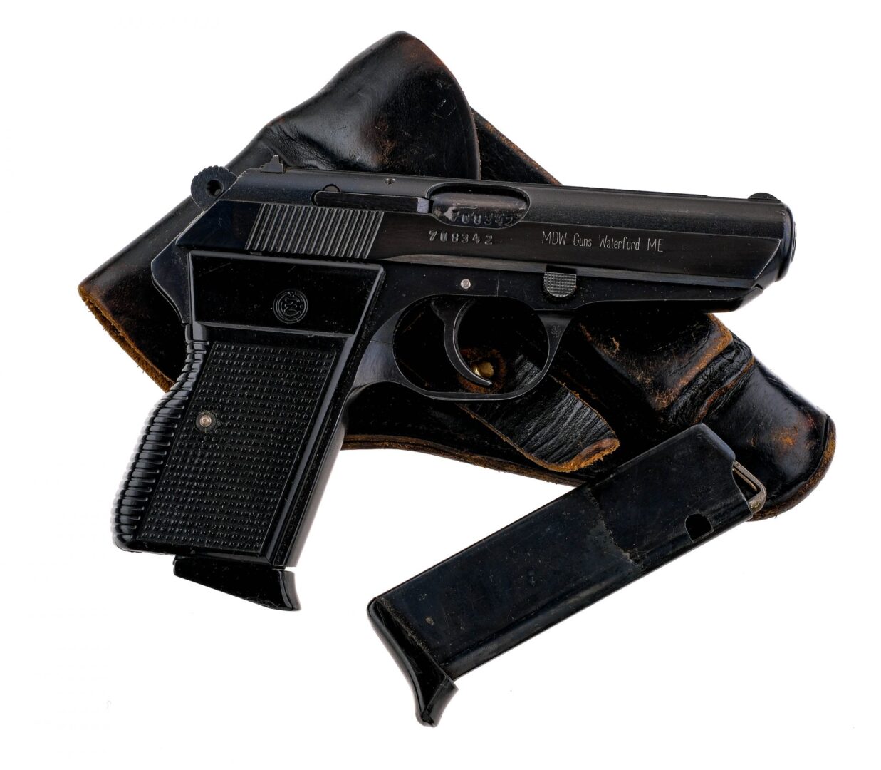 Description CZ VZOR 70 chambered in 7.65mm (.32 ACP) with two, eight round removable magazines and a 3.8″ barrel. Manufactured in Czechoslovakia and imported by MDW Guns, marked on the right side of the slide. Blued steel frame with checkered polymer grips. Push button magazine release and frame mounted manual thumb safety. Double/single action trigger and hammer. Blued serrated slide with fixed blade and notch iron sights. Serial number matching slide and barrel. Comes with a leather holster and two magazines. Must ship to a FFL holder. Condition: Good/Very Good with light scratches, scuffs, and normal wear from handling/operation. Light speckling/small spots of metal oxidation. Bright and clean bore with strong rifling. Barrel Length: 3.8″ Serial: 708342 Manufacturer: CZ Caliber: .32 ACP Model: VZOR 70 Book# 04258
