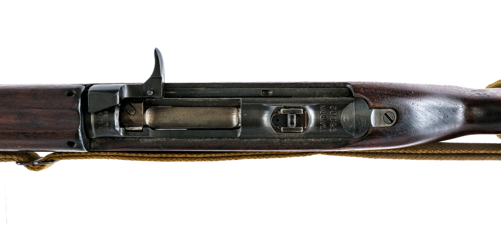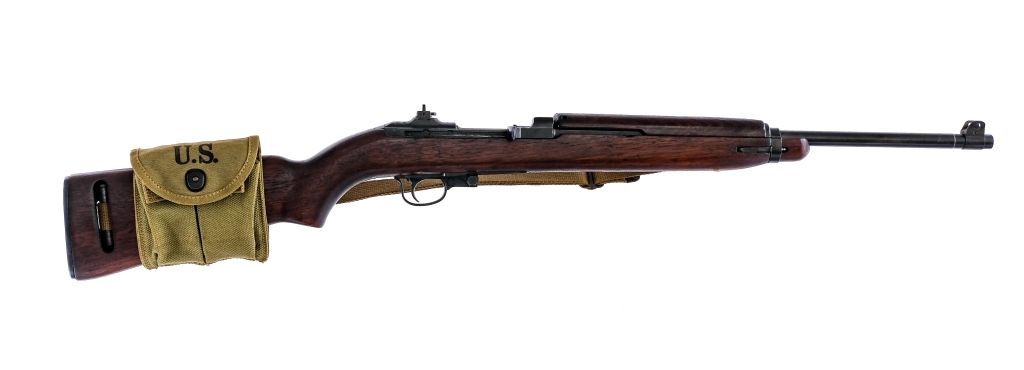 Description World War 2 Inland M1 Carbine chambered in .30 Carbine with a 18″ Barrel. The barrel is also manufactured by Inland and dated to 12-42. Early Inland receiver manufactured between 1942-1943 with serial number 96102. Protected front blade sight and rear early peep sight. Type 1 barrel band with mounted canvas horseshoe tab sling. Type 2 straight belly stock with high wood and oval oiler cut with oiler. Early two rivet top handguard. Early flat top style bolt. Cross bolt push button safety. Parkerized finish. The right side of the stock is marked with Cross cannons and boxed RIA cartouches. The stock has a canvass magazine pouch marked “G. & R. CO. 1943”. NO MAGAZINE INCLUDED. Must ship to a FFL or C&R holder. Condition: Very good with some light scratches, sharp edge wear, and general cosmetic handling wear. Normal light wear on the moving/internal parts from operation. Some light patina on some of the small parts. Light scratches and dings on the handguard. The stock has been sanded and refinished at some point, showing light wear. The stock cartouches are faded from being sanded but are still mostly visible. Bright and clean bore with strong rifling. Barrel Length: 18″ Serial: 96102 Manufacturer: INLAND (PREVIOUS MFG.) Year: 1942 Caliber: .30 Carbine Model: M1 Carbine Book# 07764