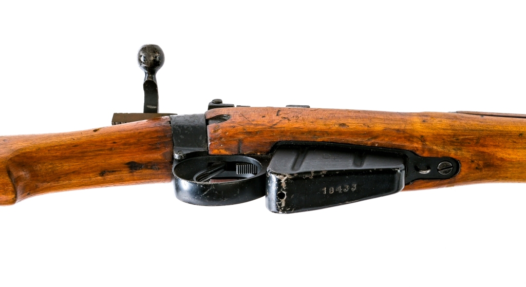 Description Enfield L59A1 Drill Purpose Rifle in .303 British with one, ten round removable magazine and a 25″ barrel. This rifle is De-Milled and will NOT function. The firing pin has been cut and welded shut, barrel has a cut section on the left side, receiver has a left side section cut, bolt will not close and the barrel has a weld inside. Marked on the outside wood and magazine DP. Matching serial number on the bolt, magazine box and receiver. Non-Gun, No FFL required and ships to buyers home. Condition: Good with scratches, wood dings, finish wear/loss and handling wear. Rust to the visible portion of the bore. Barrel Length: 25″ Serial: 18433 Manufacturer: Savage Year: 1943 Caliber: .303 Brit Model: L59A1