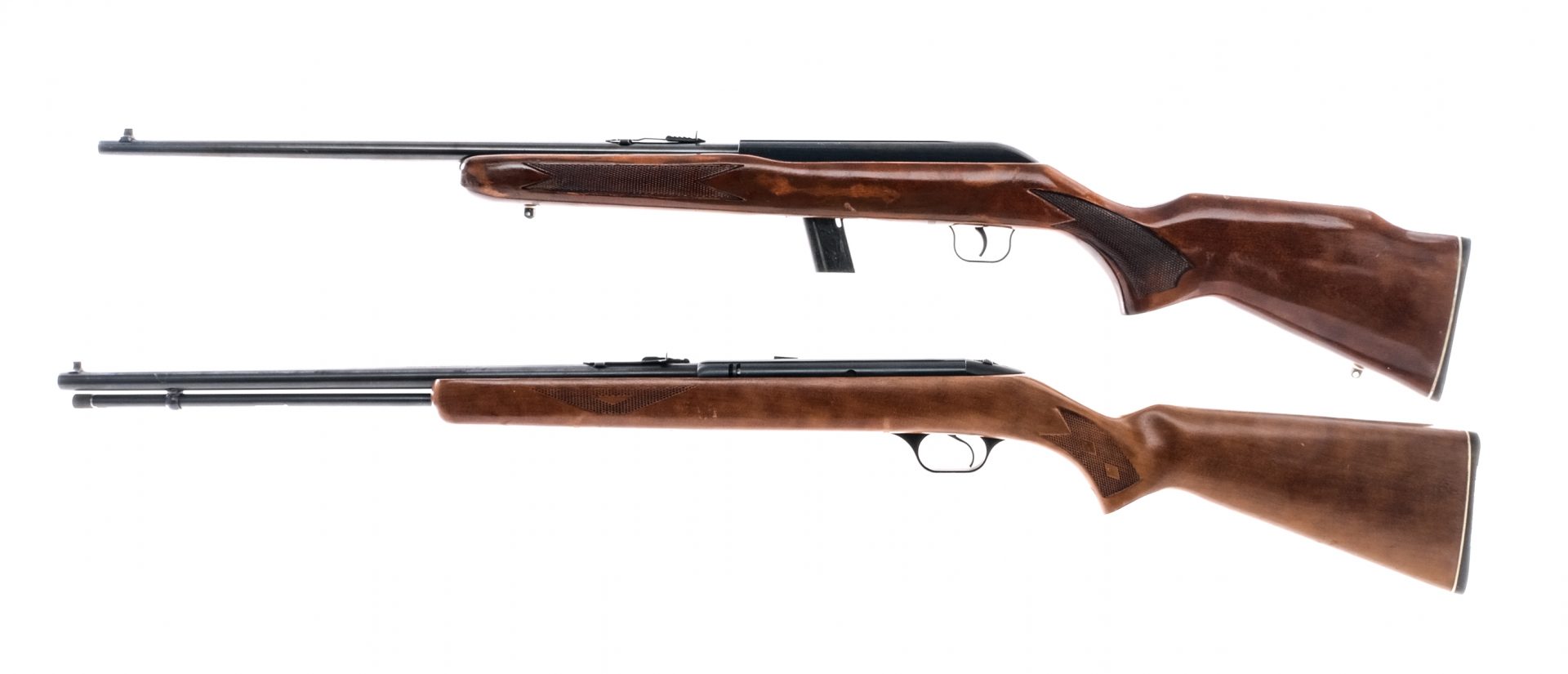 Description This lot is for two Estate rifles in .22 caliber. Westernfield Model SB-836 in .22 Long, Long Rifle or H.S Short with a varied capacity and a 19.75″ barrel. Checkered wood stock. Blued receiver, magazine tube and barrel. Rear adjustable and front fixed blade sight. Lakefield Model 64B in .22 Long Rifle with one, ten round removable magazine and a 20″ barrel. Blued receiver and barrel. Rear adjustable and front fixed blade sight. Must ship the Lakefield to a C&R or FFL holder and the Westernfield to a FFL holder. Condition: Good with finish wear/loss and refinished wood on the Lakefield. Both rifled have clean rifled bores. Barrel Length: 20″ 19.75″ Serial: L108104 Manufacturer: Westernfield Lakefield Ar Caliber: .22 L LR H.S. Short Model: 64B SB-836 Book# 00860 00831
