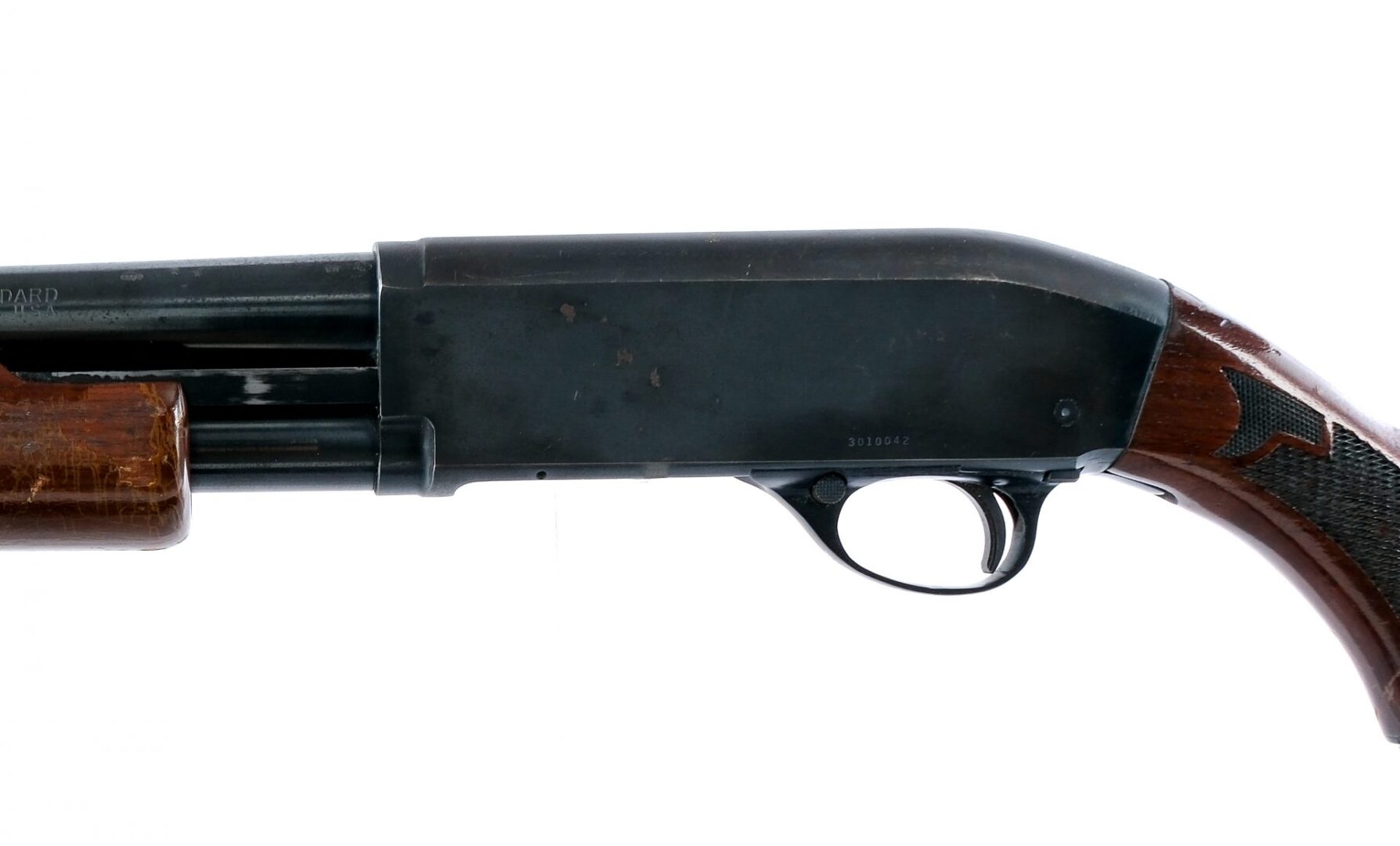 Description Estate shotgun lot with two pieces. High Standard Flight King Deluxe Model K-121 in 12 gauge 2 3/4″ with a four round capacity and a 28″ MOD fixed choke barrel. Rubber butt pad. Checkered wood stock and front forend. Blued trigger guard, trigger, receiver, magazine tube and barrel. Front trigger guard push button safety. Front fixed white composite bead sight. Lever Arms Co Nitro Special i 12 gauge with a two round capacity and a 30″ side by side barrel. Right bore has a MOD and Left a FULL fixed choke. Composite butt plate. Checkered wood stock and front forend. Finish worn trigger guard, double trigger, box lock receiver, top lever and barrel. Rear receiver tang safety. Front fixed brass bead sight. Must ship to a C&R or FFL holder. Condition: Fair with scratches, finish wear/loss, wood damage and light rust. Both have clean smooth bores. Barrel Length: 30″ 28″ Serial: 180690 3010042 Manufacturer: Lefever Arms High Standar Gauge: 12 Year: 1974 1924 Model: K-121 Nitro Special Book# 05363 05358
