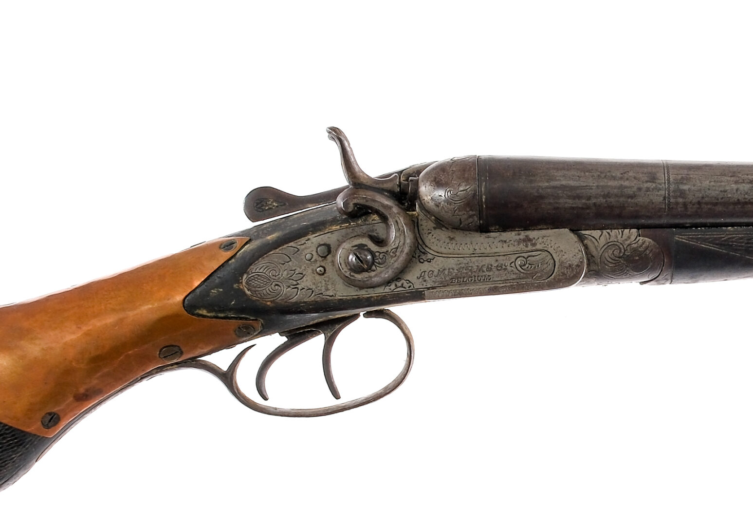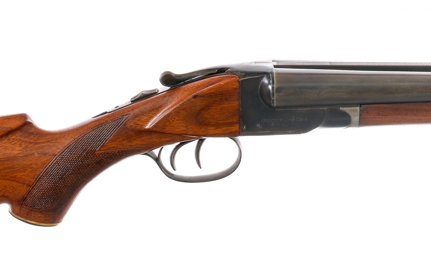 Description Estate shotgun lot with two twelve gauge shotguns. Hunter Arms Hunter Special in 12 gauge with a two round capacity and a 298″ side by side barrel. Left barrel has a FULL and right barrel a MOD fixed choke. Checkered wood stock and front forend. Blued double triggers, receiver and barrel. Front fixed metal bead sight. Acme Arms Co. in 12 gauge with a two round capacity and a 30″ side by side MOD fixed choke barrel. Checkered wood stock and front forend. Finish worn double triggers, engraved lock plates, double hammers and barrel. Front fixed brass bead sight. Must ship to a C&R or FFL holder. Condition: Poor with scratches, finish wear/loss, rust, broken/missing parts, wrist repair with copper sheet on the Acme and handling wear. Both sets of smooth bores have spots of rust and pitting. Sold AS-IS. Barrel Length: 28″ 30″ Serial: 194789 NVSN Manufacturer: Hunter Arms Acme Arms Co Gauge: 12 Model: Hunter Special SxS Book# 03238 03239