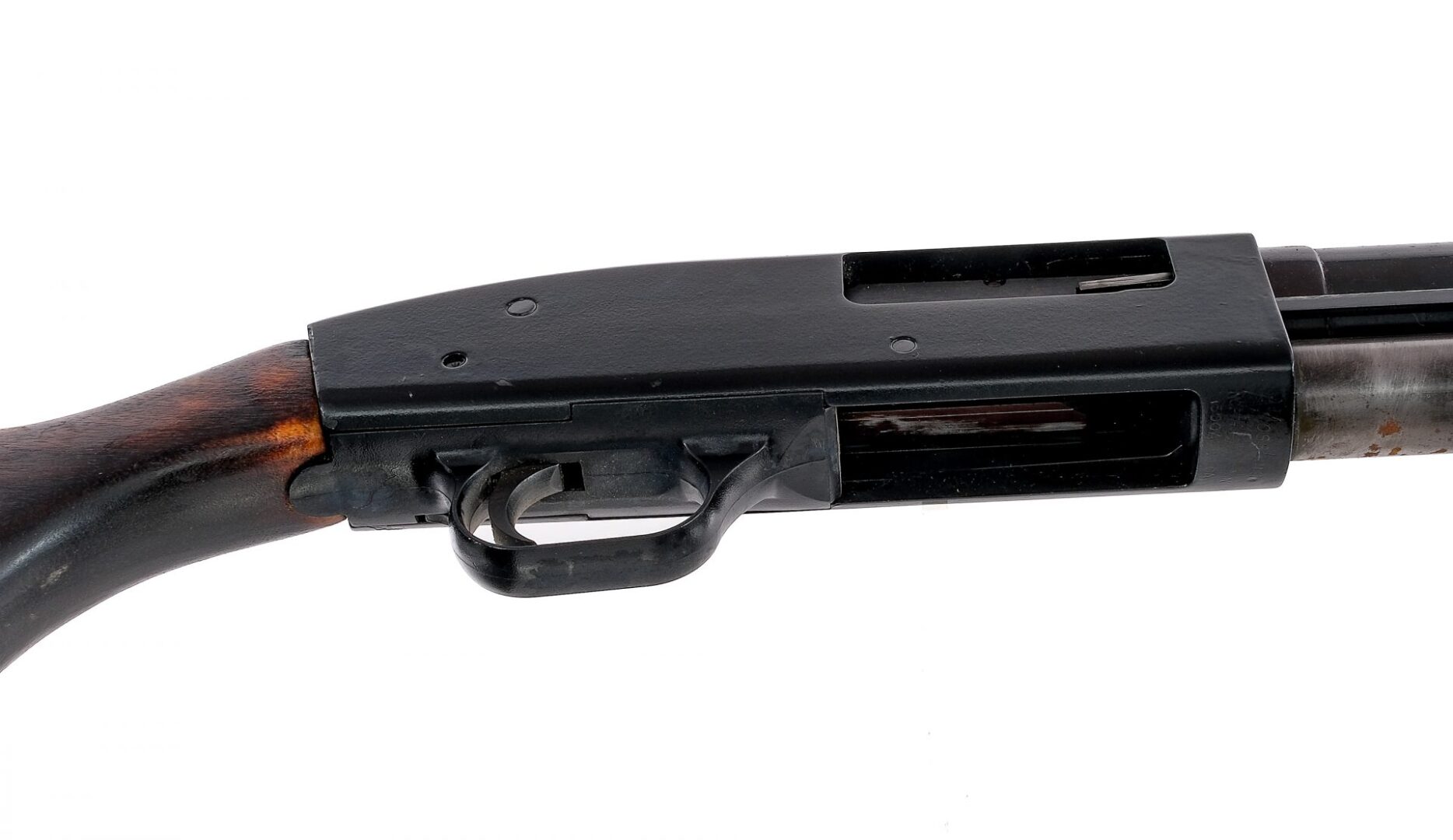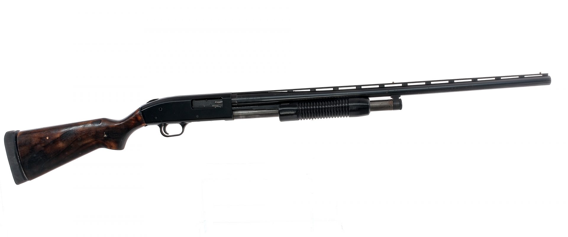 Description Estate shotgun lot with two twelve gauge shotguns. Mossberg 500A in 12 gauge 2 3/4″-3″ with a 28″ top rib vented MOD removable choke barrel. Remington rubber butt pad. Smooth aftermarket wood stock. Aftermarket black finished receiver. Blued trigger and barrel. Mid barrel brass bead and front fixed bead sight. Stevens/Savage Model 940B in 12 gauge 3″ with a single round capacity and a 30″ FULL fixed choke barrel. Composite butt plate. Smooth wood stock and front forend. Case colored receiver. Blued trigger, hammer and barrel. Front fixed metal bead sight. Must ship to a C&R or FFL holder. Condition: Poor with refinished parts on the Mossberg, scratches, finish wear/loss and spots of rust. The Mossberg has a clean smooth bore and the Stevens has a spot of rust at the top of the smooth bore. Sold AS-IS. Barrel Length: 28″ 30″ Serial: NVSN J929142 Manufacturer: Mossberg Stevens Savage Gauge: 12 Model: 500A 940B Book# 03496 03495