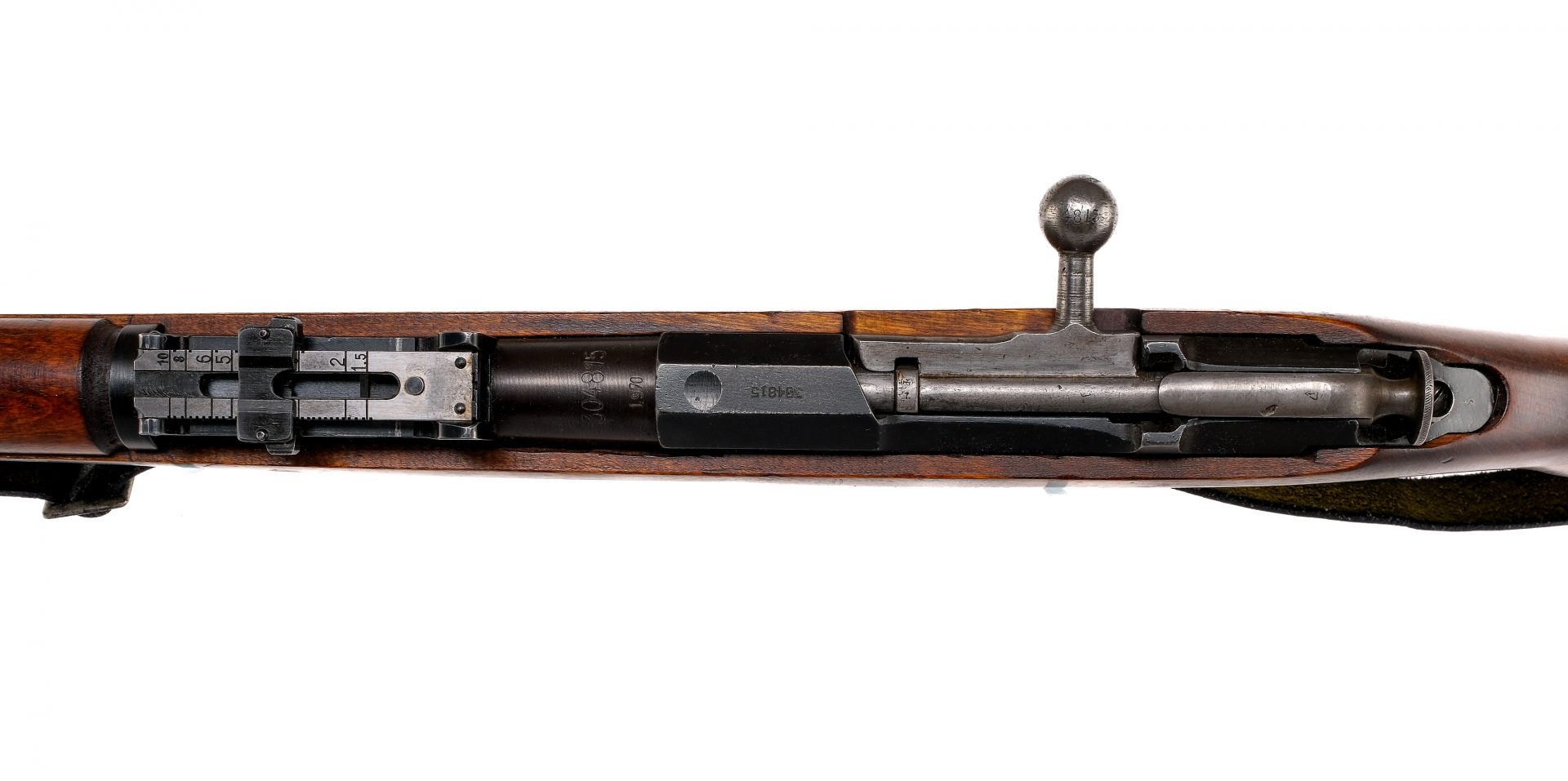 Description Finish Model 39 Mosin Nagant in 7.62x54R with a five round capacity and a 27″ barrel. No visible maker mark. Import marked on the left side of barrel by, INTER ORDNANCE NC. Metal butt plate. Smooth wood stock and square finger spliced front forend. Finish worn blued trigger guard, trigger, hexagon receiver and barrel. Under barrel removable cleaning rod and fixed bayonet lug. Rear flip up adjustable and front fixed blade sight. Serial numbers matching on the bolt, receiver and barrel. Comes mounted with a unmarked leather shoulder sling. Must ship to a C&R or FFL holder. Condition: Good/Very Good with light scratches, finish wear and handling wear. Clean rifled bore. Barrel Length: 27″ Serial: 304815 Manufacturer: Finland Year: 1970 Caliber: 7.62x54R Model: M39 Mosin Nagant Book# 03987