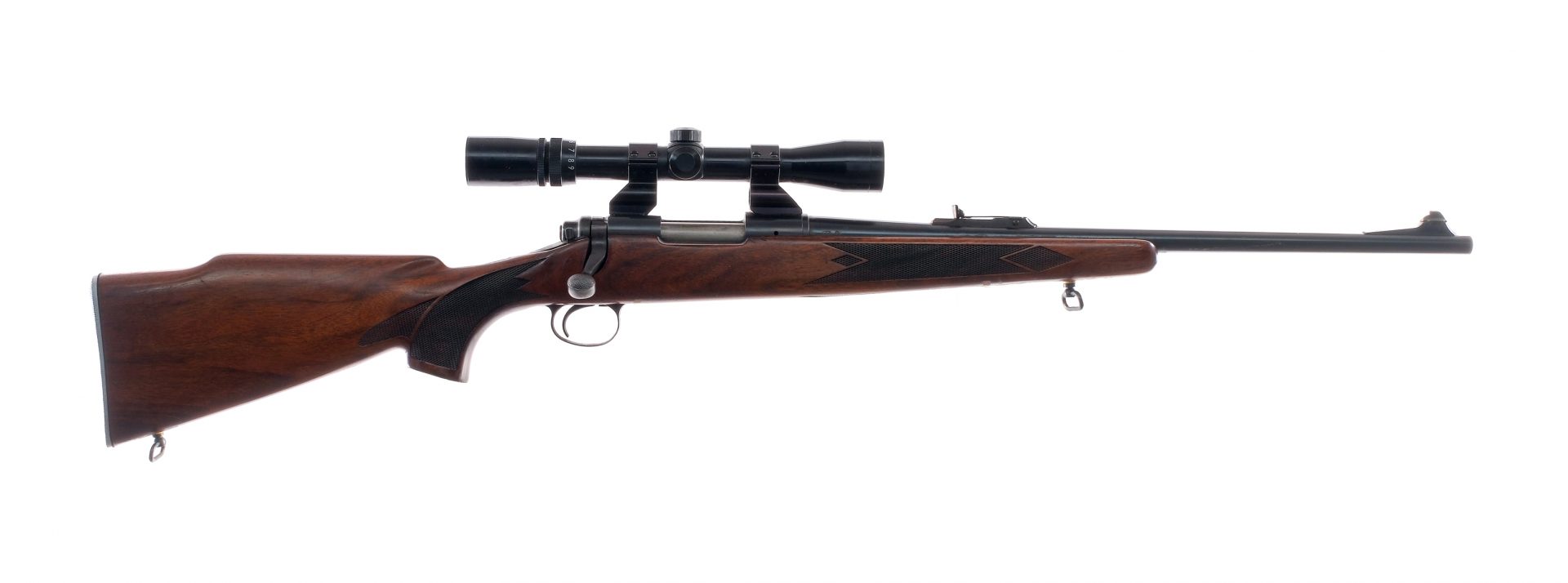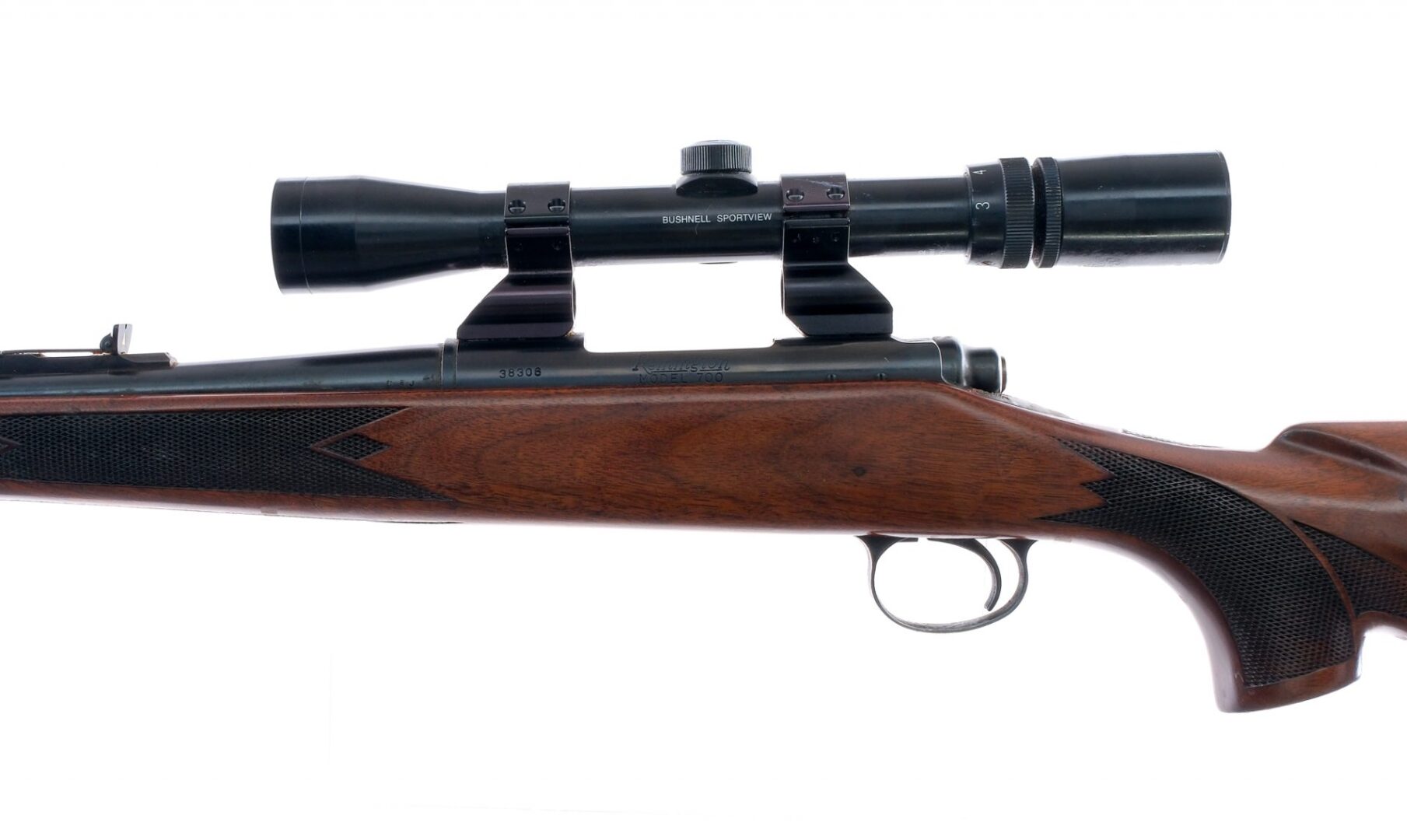 Description Remington 700 chambered in .243 Winchester with a four round internal magazine capacity and a 20″ barrel. Manufactured in the first year of production in 1962 with date code EJ and serial number 38306. Blued barrel, receiver, knurled bolt handle, and serrated trigger. Squared push to fire safety. The top of the receiver is drilled and tapped and mounted with a Bushnell 3x-9x,32 scope with clear and intact glass. Wood Monte Carlo stock with checkered forend, checkered pistol grip, and a checkered Remington butt plate. Front and rear sling swivels. Fixed iron sights. Must ship to a FFL holder. Condition: Good/Very Good with scratches and wear from normal handling and operation. Some light speckling of metal oxidation. Some light spots of finish loss with heavier finish loss on the butt plate and trigger guard. Varying spots of dried oil/grease. Bright bore with strong rifling. Barrel Length: 20″ Serial: 38306 Manufacturer: REMINGTON ARMS COMPANY Year: 1962 Caliber: .243 Winchester Model: 700 Book# 02738