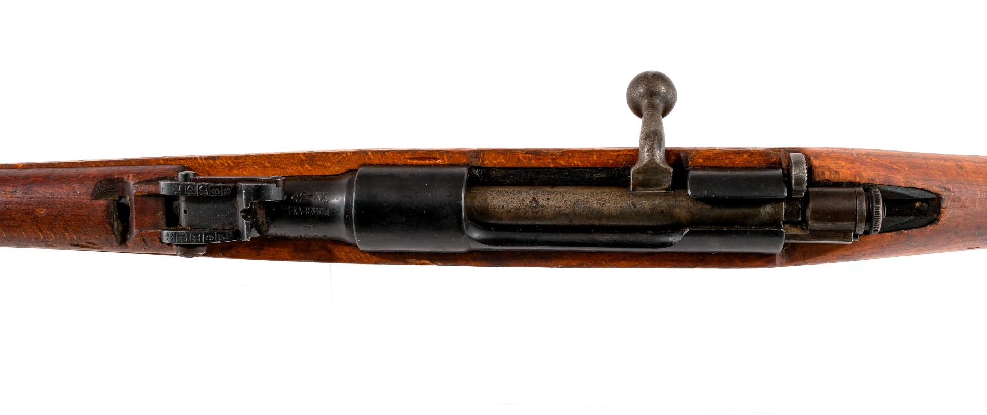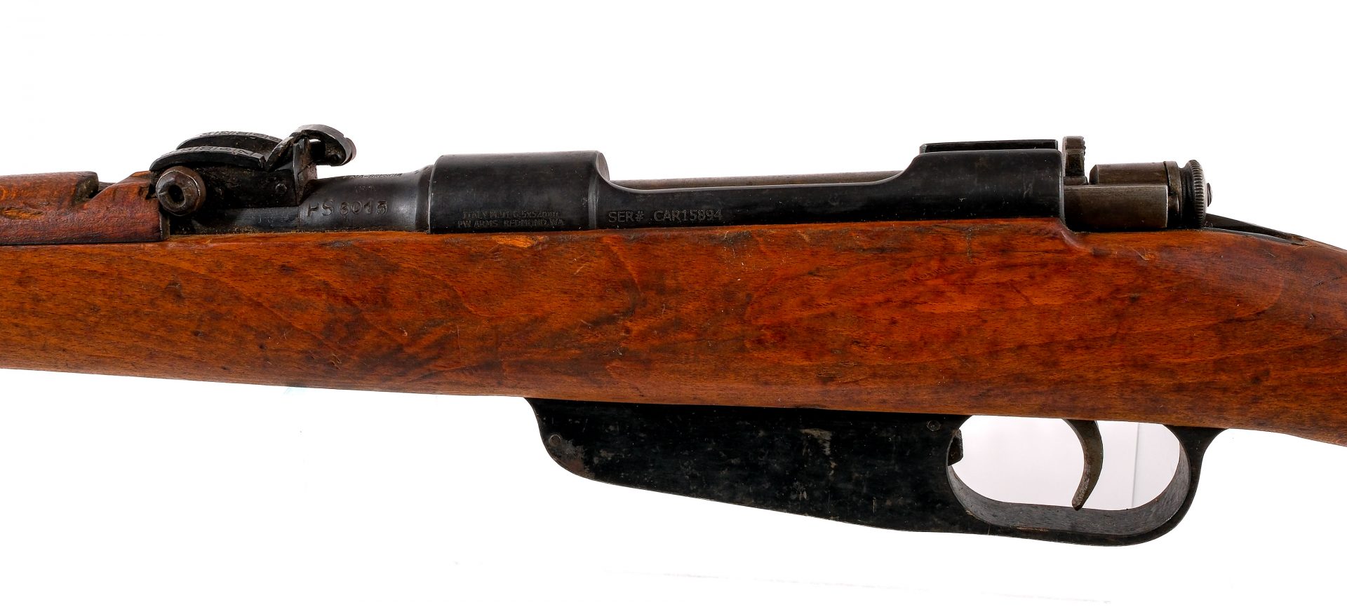 Description FNA Carcano Model 1891 Calvary Carbine in 6.5x52mm with a six round capacity and a 17.7″ barrel. Made in Brescia Italy. Left side of receiver import marked by, PW ARMS REDMOND WA. Metal butt plate with cleaning rod door, rod intact inside. Smooth wood stock and front forend. Blued trigger guard, receiver and barrel. Unfinished steel trigger and bolt. Rear bolt safety. Under barrel flip out spike bayonet. Rear flip up adjustable and front fixed blade sight. Metal slot and loop for mounting a shoulder sling. Serial number matching on the barrel and wood stock. The PS prefix on the original serial number denotes this rifle is 1 of 10,000 marked for Police Service. Must ship to a C&R or FFL holder. Condition: Fair with scratches, finish wear, wood dings and spots of rust. Bayonet has spots of light rust/pitting. The rifled bore has rust with visible rifling. Barrel Length: 17.7″ Serial: CAR15894 Manufacturer: FNA Brescia Italy Year: 1944 Caliber: 6.5x52mm Model: M91 Calvary Carbine Book# 04147