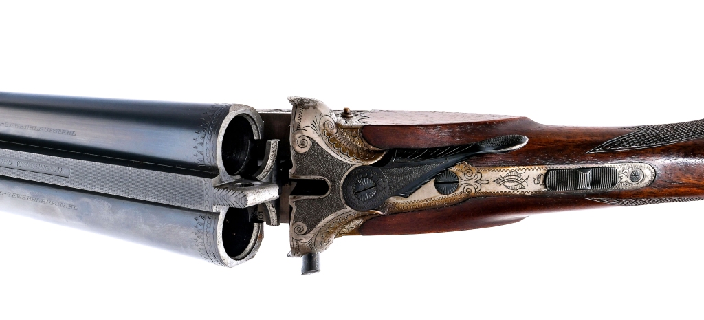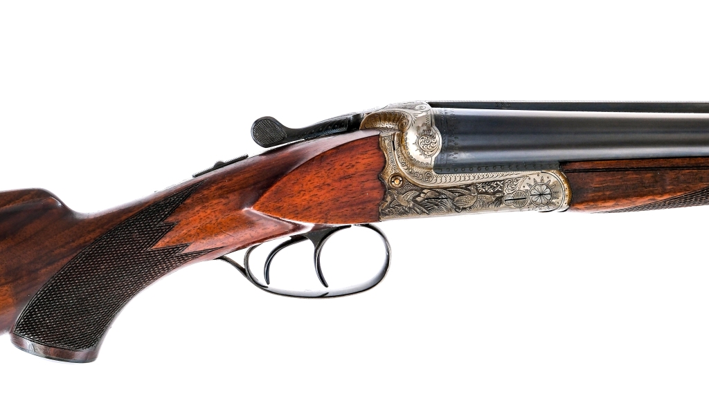 Description Simson Suhl German made side by side in 12 gauge with a two round capacity and a 28.25″ barrel. The right bore has a FULL fixed choke and the left has an Improved Modified choke. Checkered composite butt plate. Checkered Monte Carlo style pistol grip stock and front forend. Blued engraved trigger guard, double trigger and barrel. Engraved box lock receiver with pheasant scenes and scrollwork. Top of wrist slide button safety. Rear lock tang located knurled top lever. Front fixed brass bead sight. Bottom of the stock has hole for mounting a eyelet for sling. Mid barrel underside is drilled and tapped with screws for a shoulder sling bracket. Must ship to a C&R or FFL holder. Condition: Very Good with light scuffs and a micro crack on the top right side of wood against the receiver. Clean smooth bores. Measurements: LOP @ Heel= 14.5″ LOP @ Toe= 15″ Choke: L= (IMP Mod) R= (FULL) Drop @ Comb = 1 5/8″ Drop @ Heel = 2 3/4″ Weight= 6.8 lbs. Barrel Length: 28.25″ Serial: 235115 Manufacturer: Simson Gauge: 12 Model: SxS Shotgun Book# 08367