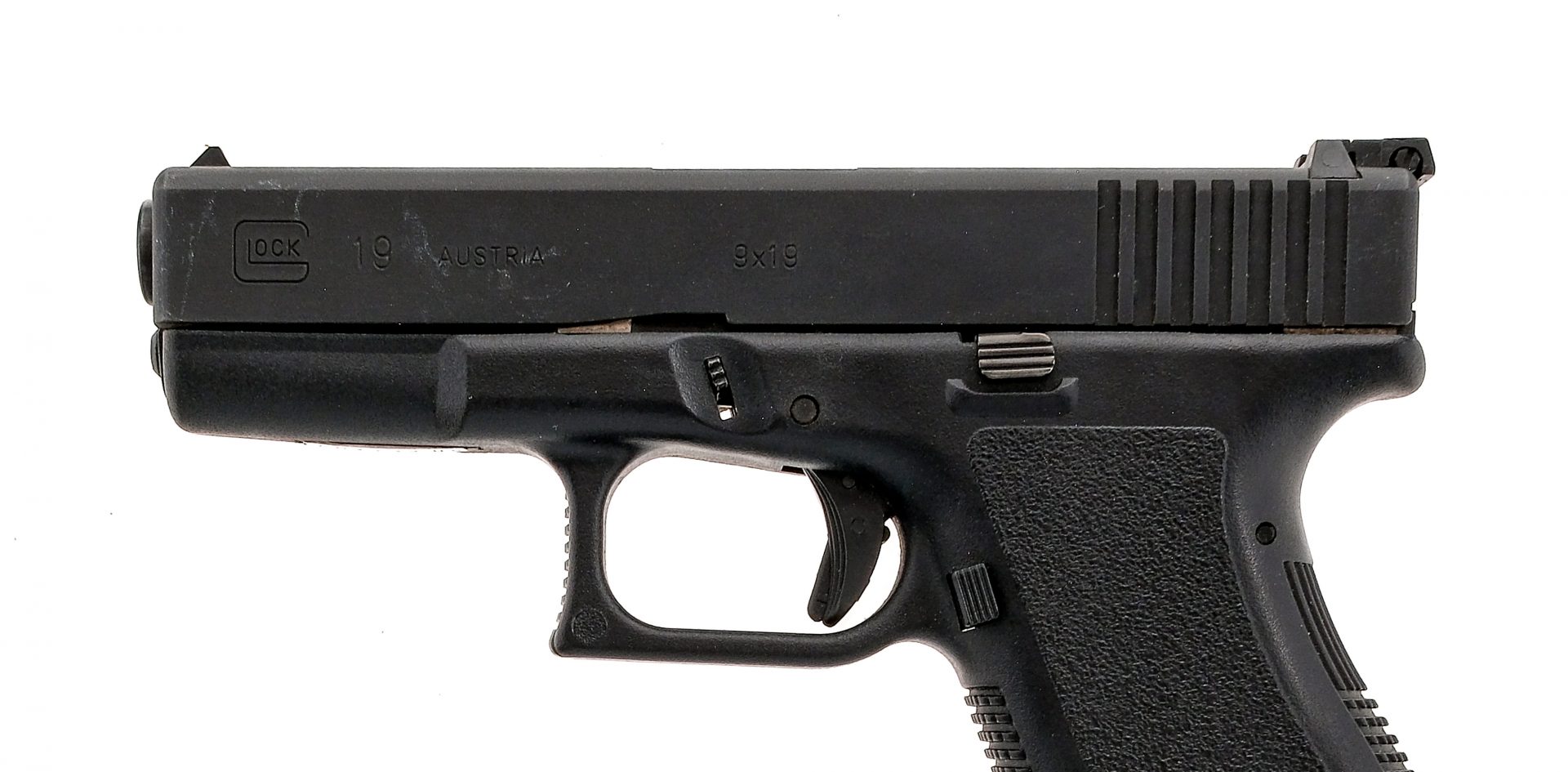Description Second Generation Glock 19 chambered in 9mm with a 4″ barrel. Fully textured polymer frame with push button magazine release and serrated slide release. Polymer trigger with trigger safety. Steel serrated slide with white Glock bucket sights. Missing its magazine. Must ship to a FFL holder. Condition: Very Good with light scratches and general wear from handling/operation. Bright and clean bore with strong rifling. Barrel Length: 4″ Serial: AMV733US Manufacturer: GLOCK Caliber: 9x19mm Parabellum Model: 19 Gen 2 Book# 03916